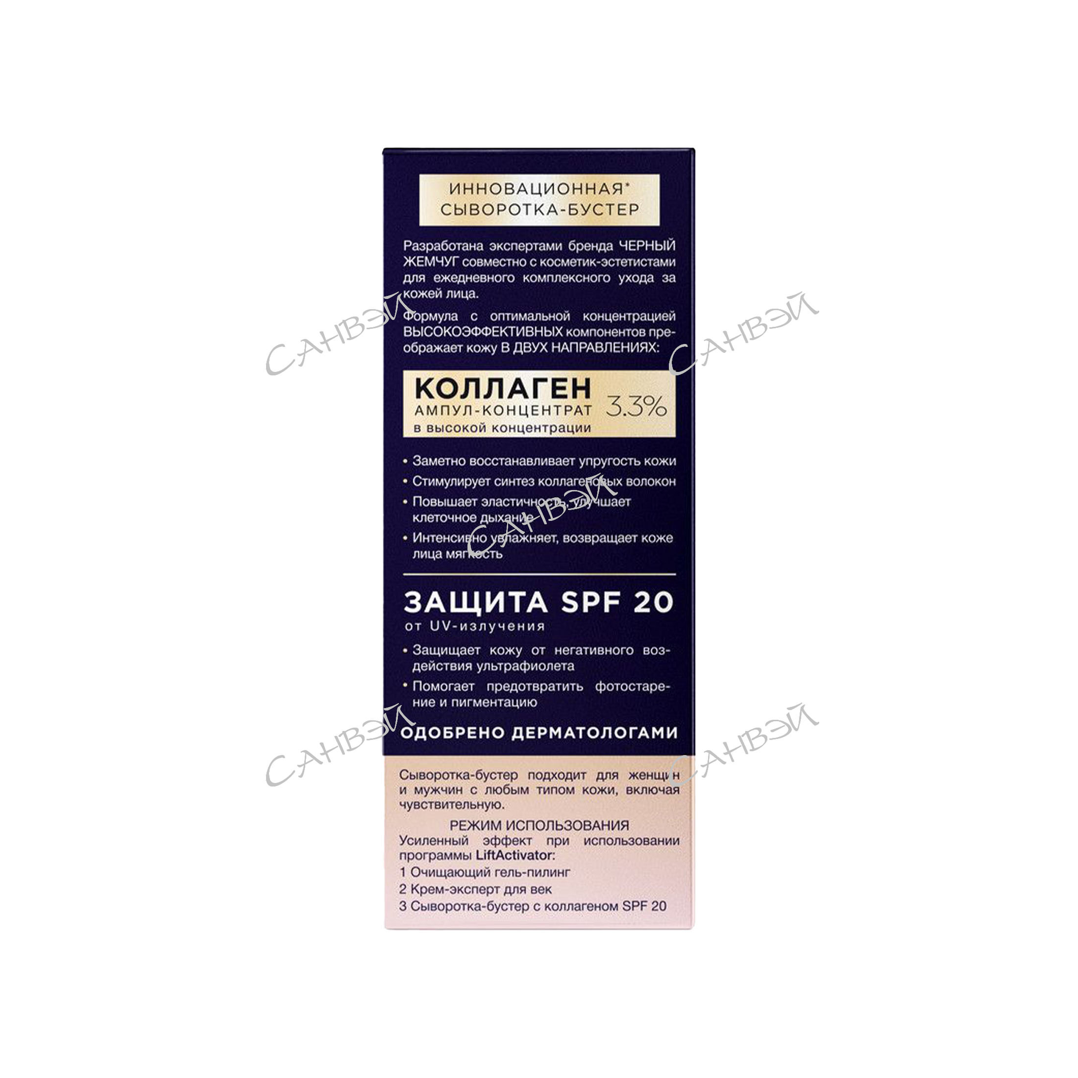 Черный Жемчуг сыворотка-бустер для лица восстанавливающая упругость с коллагеном, SPF20 30 мл в интернет-магазине Санвэй разработана экспертами бренда Черный Жемчуг совместно с косметик-эстетистами для ежедневного комплексного ухода за кожей лица.