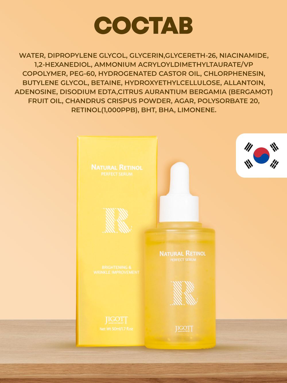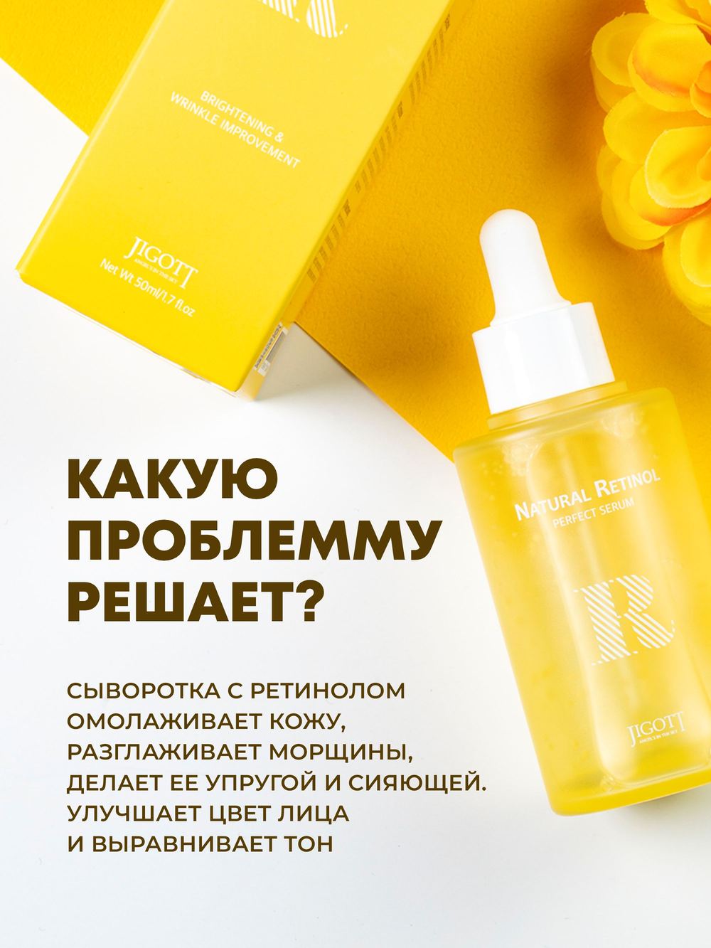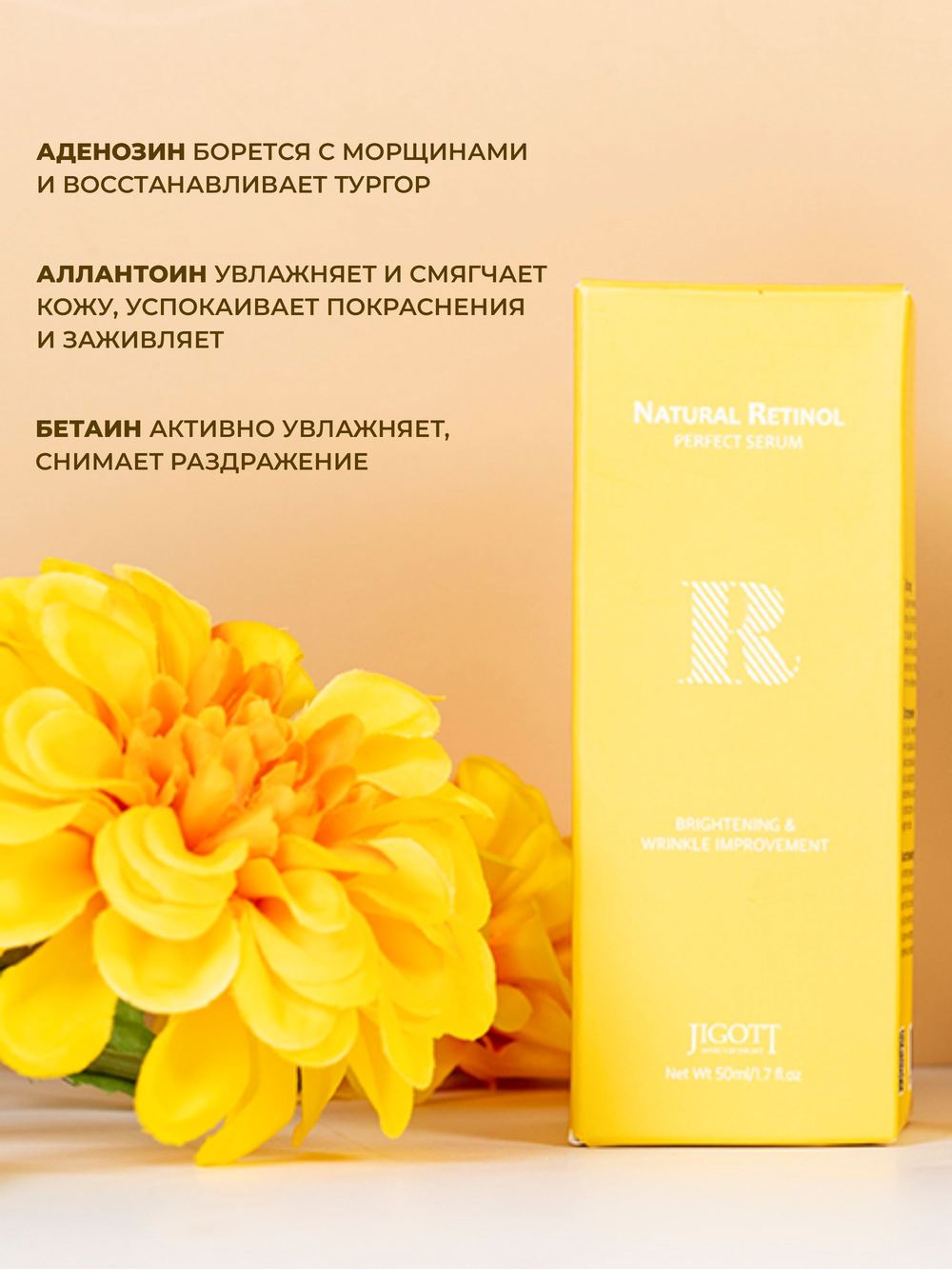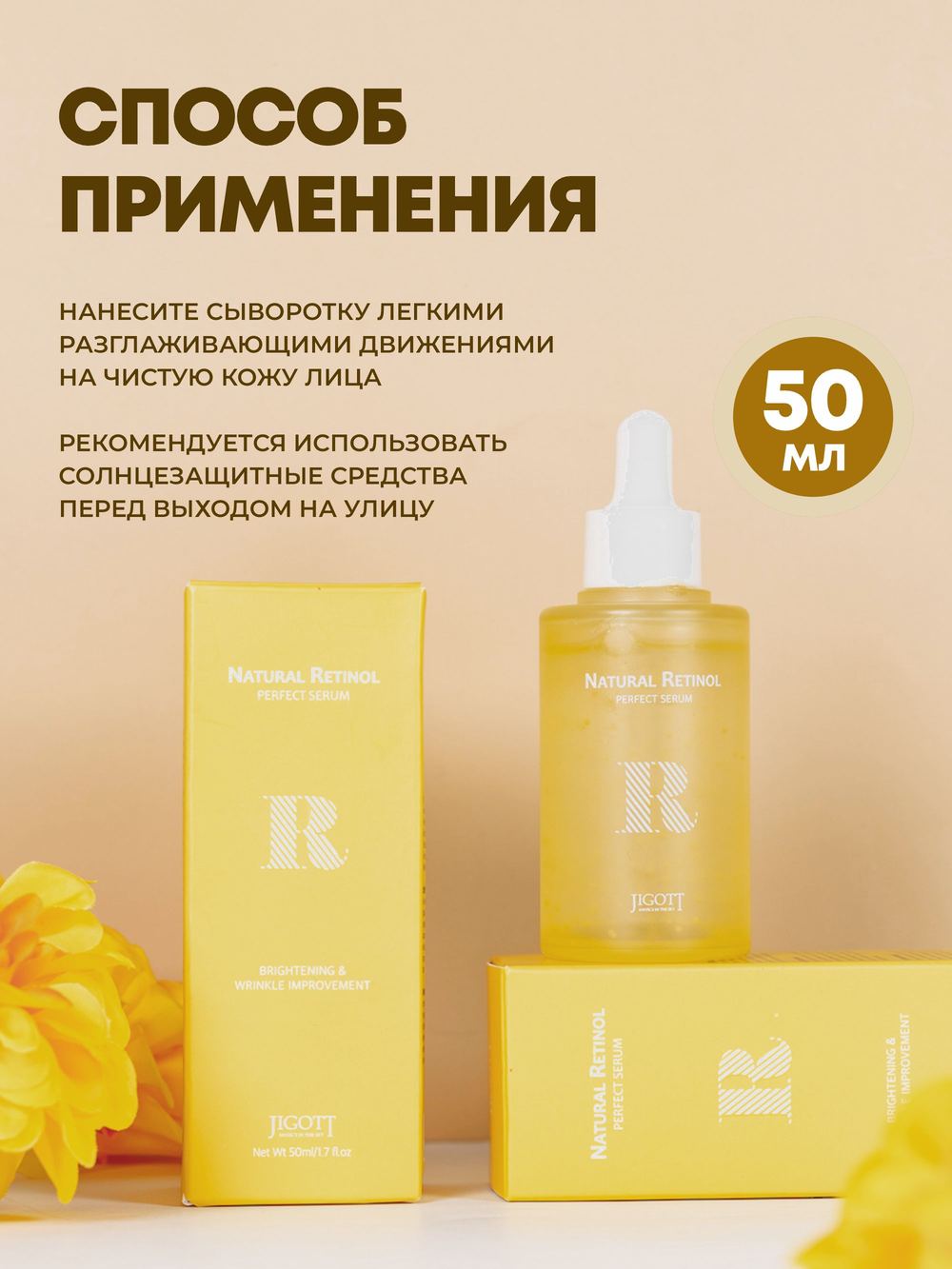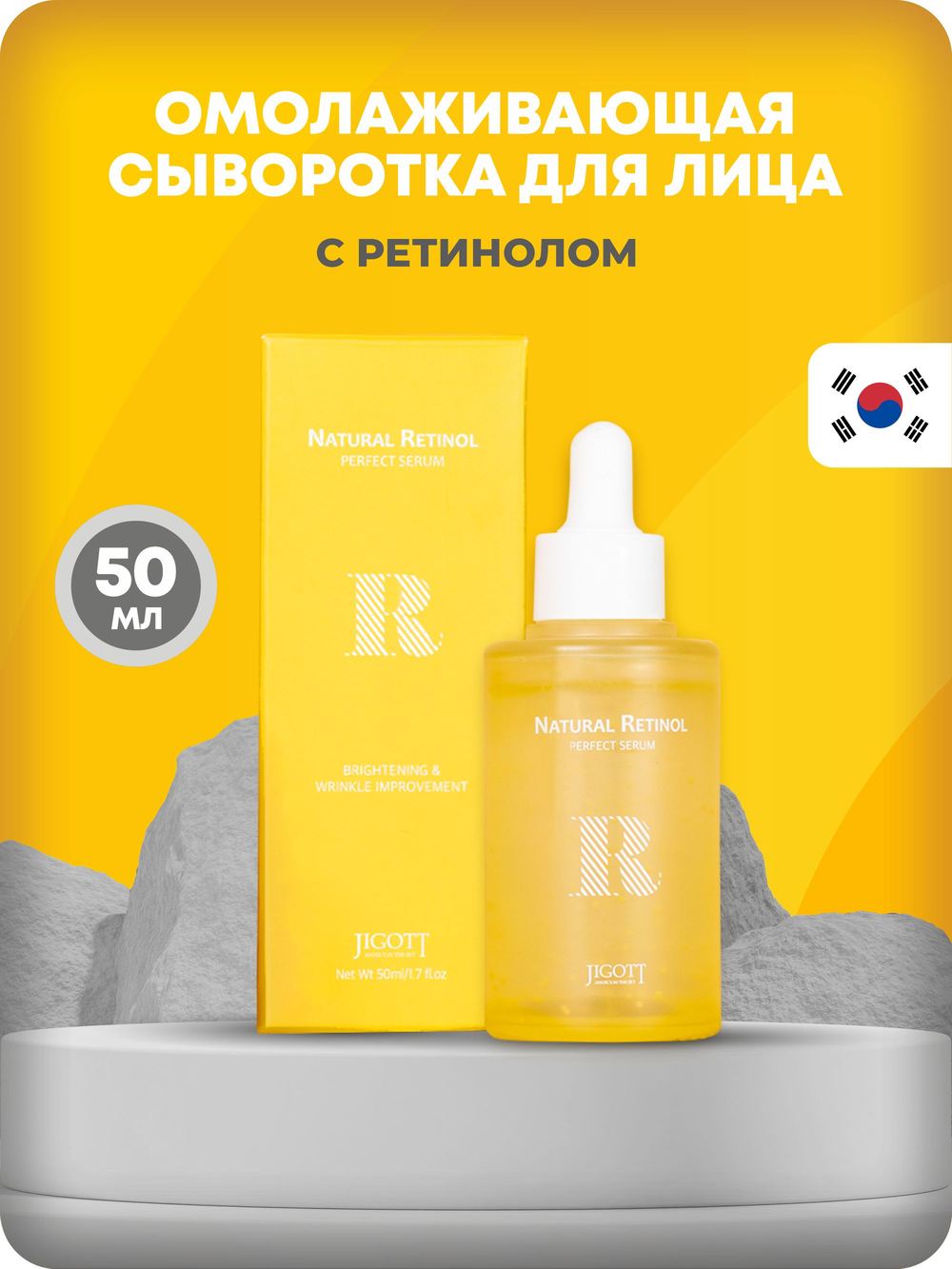 Арт./мод: JT-44. ТМ: JIGOTT. Ретинол (1000 ppb) ускоряет синтез коллагена и эластина для улучшения эластичности кожи. Средство делает кожу более гладкой и придает сияющий вид коже лица, восполняет необходимыми питательными веществами. Страна-изготовитель: Республика Корея.