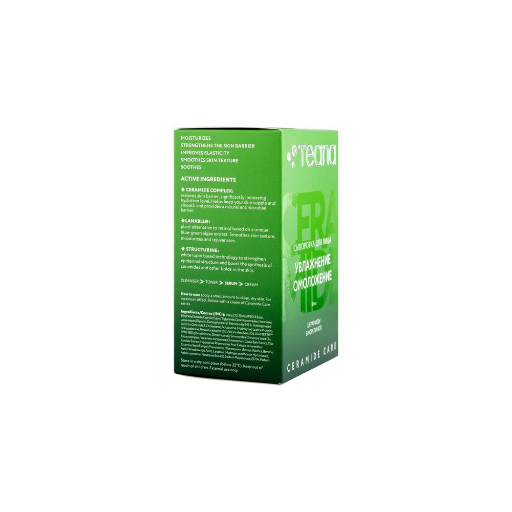 Teana Сыворотка для лица УВЛАЖНЕНИЕ ОМОЛОЖЕНИЕ с церамидами и биоретинолом в интернет-магазине Санвэй - это интенсивный уход для увлажнения и омоложения кожи. Сыворотка мягко выравнивает ее текстуру, защищает от внешнего воздействия, делая невероятно гладкой, сияющей и ухоженной.