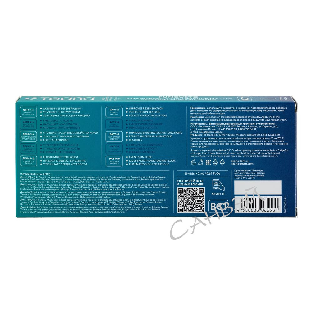 Teana Fungusto сыворотка д/лица омолаж.,увлажн. д/в тип.кожи (10 ампул*2мл) карт./уп 1шт / шт / 1057 / 062531