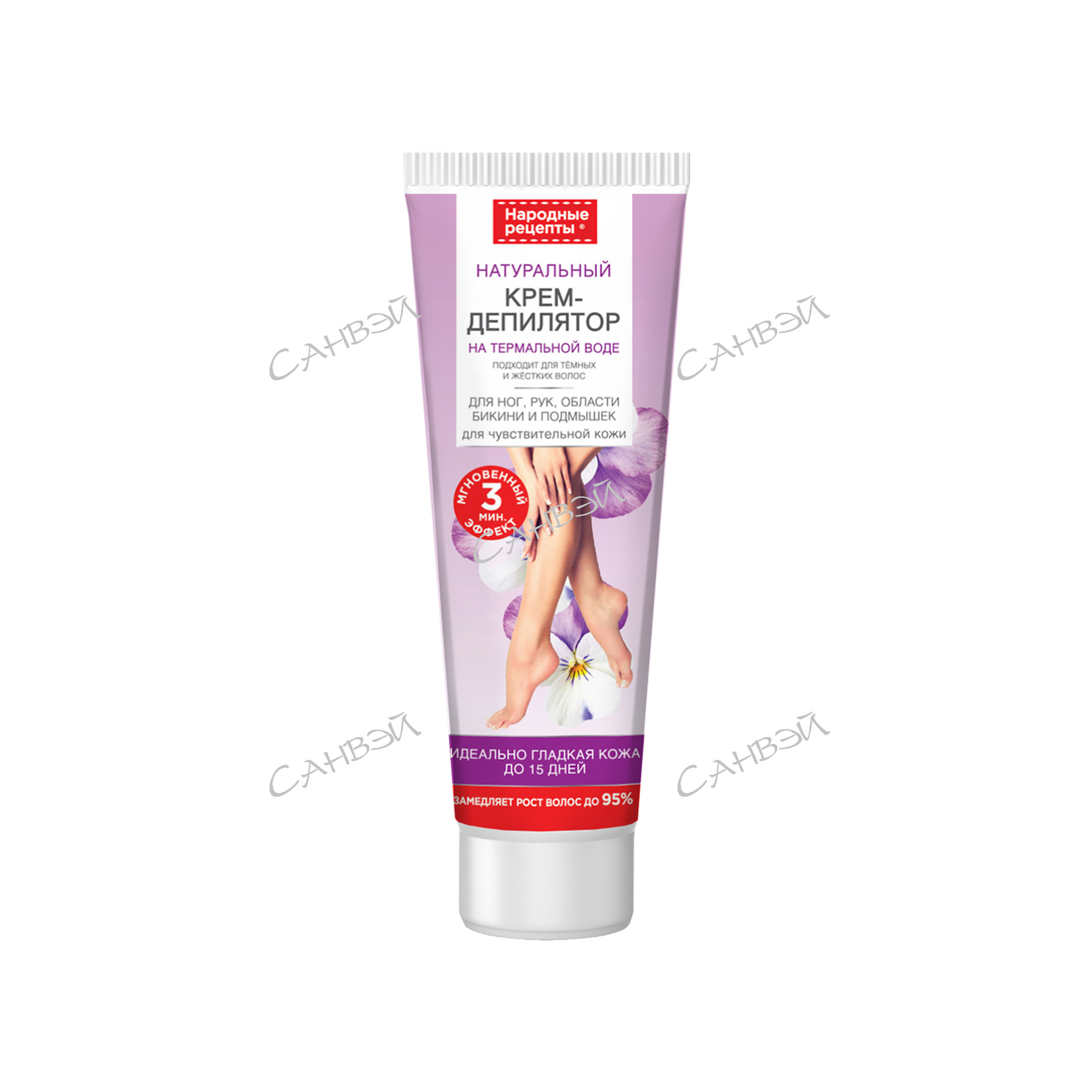 Народные Рецепты крем д/депиляции гладк. д/чувст.кожи фиал.,проп.,ромаш. 1шт 100 мл пенал / 24шт / 2133 / 929388