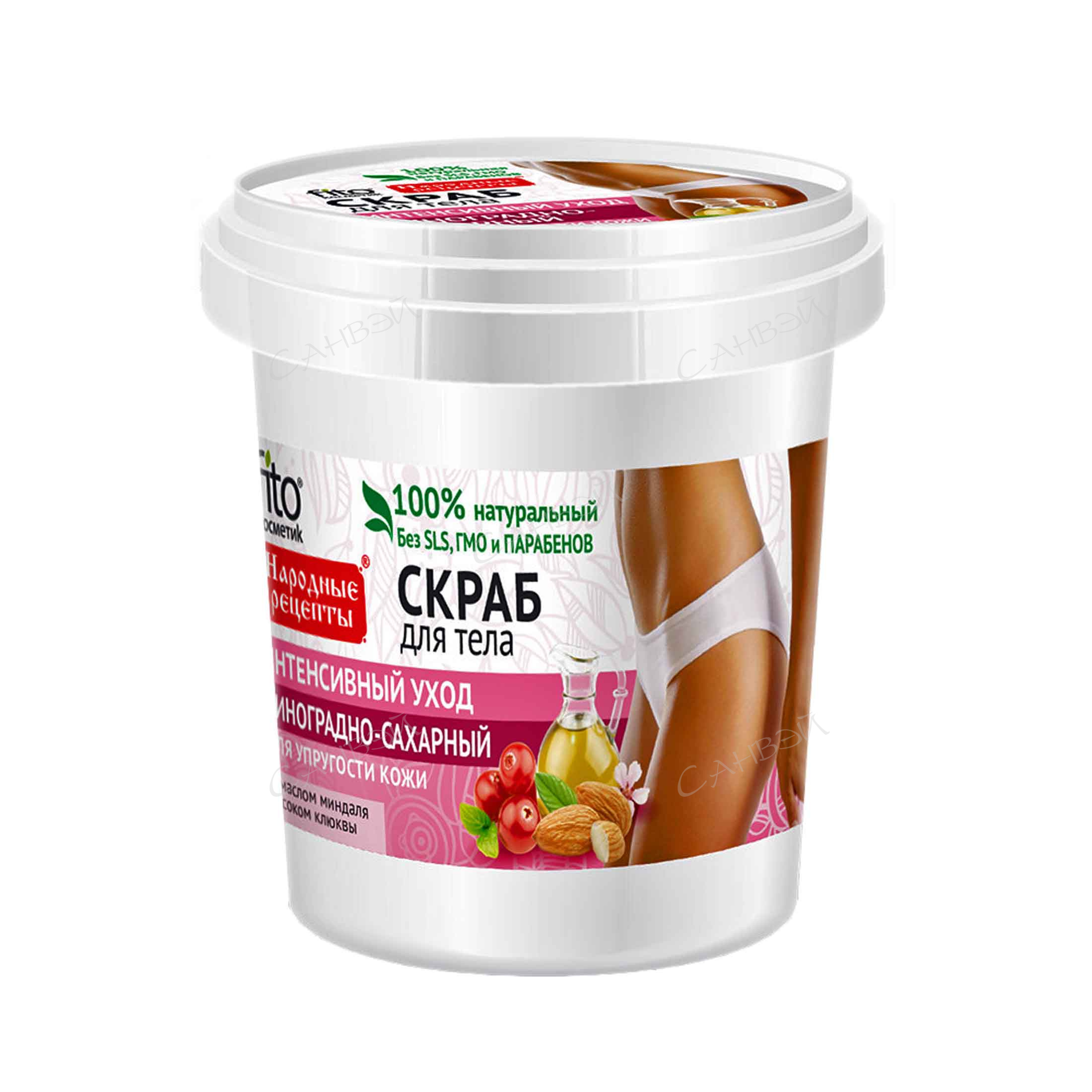 fito Косметик Народные рецепты скраб д/тела 155мл упруг. д/в тип.кожи виногр.сахарн. банка 1шт / 12шт / 7725 / 926448