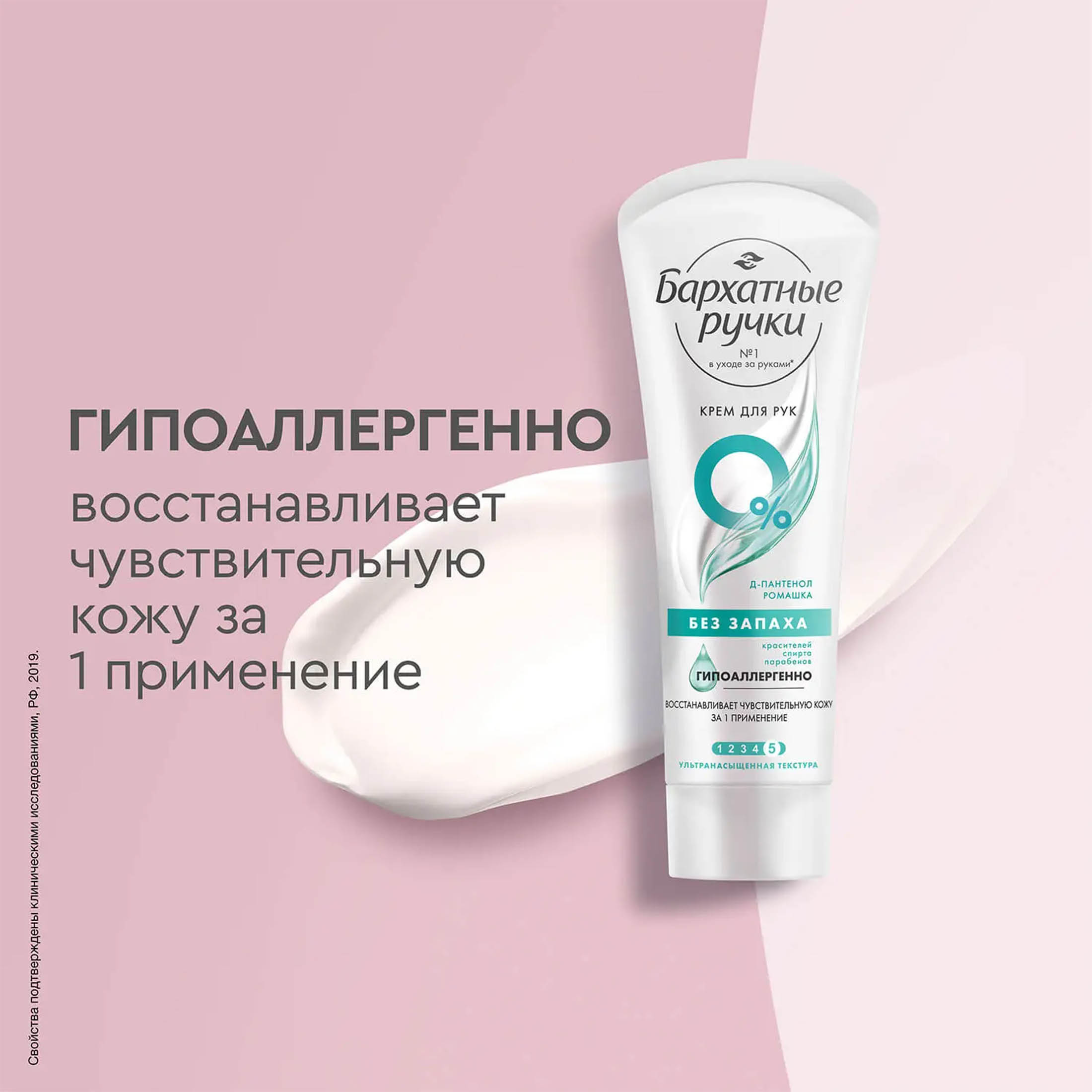 Бархатные ручки Крем для рук Без запаха 72 мл из интернет-магазина Санвэй с обновленным дизайном, новыми ароматами и усиленными формулами! Если Вы обладатель чувствительной кожи рук, попробуйте гипоаллергенный крем для рук Без запаха Бархатные ручки.
