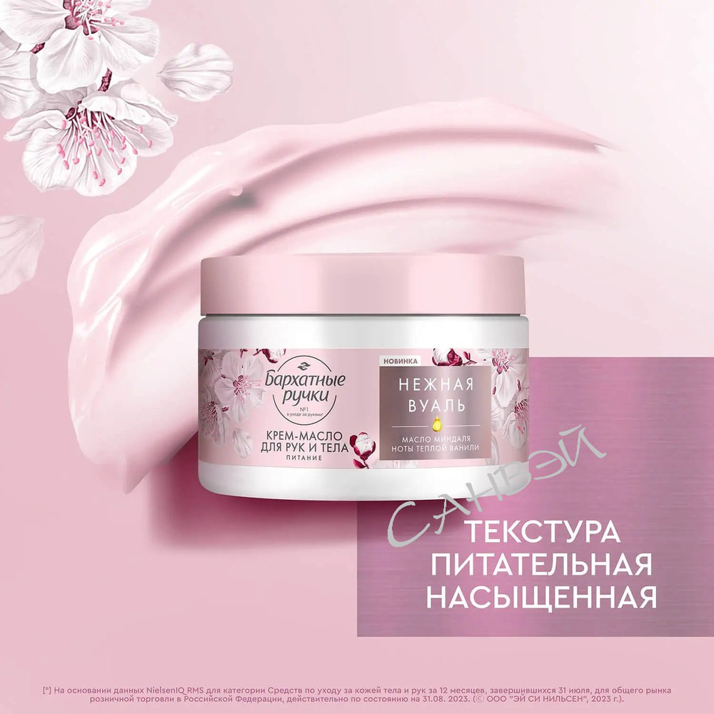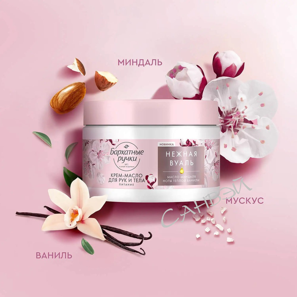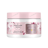 Насладитесь качественным уходом за кожей с эффектом спа-процедуры у себя дома! Бренд Бархатные ручки представляет бьюти-новинку - парфюмированный крем баттер для рук и тела Питание Нежная вуаль.