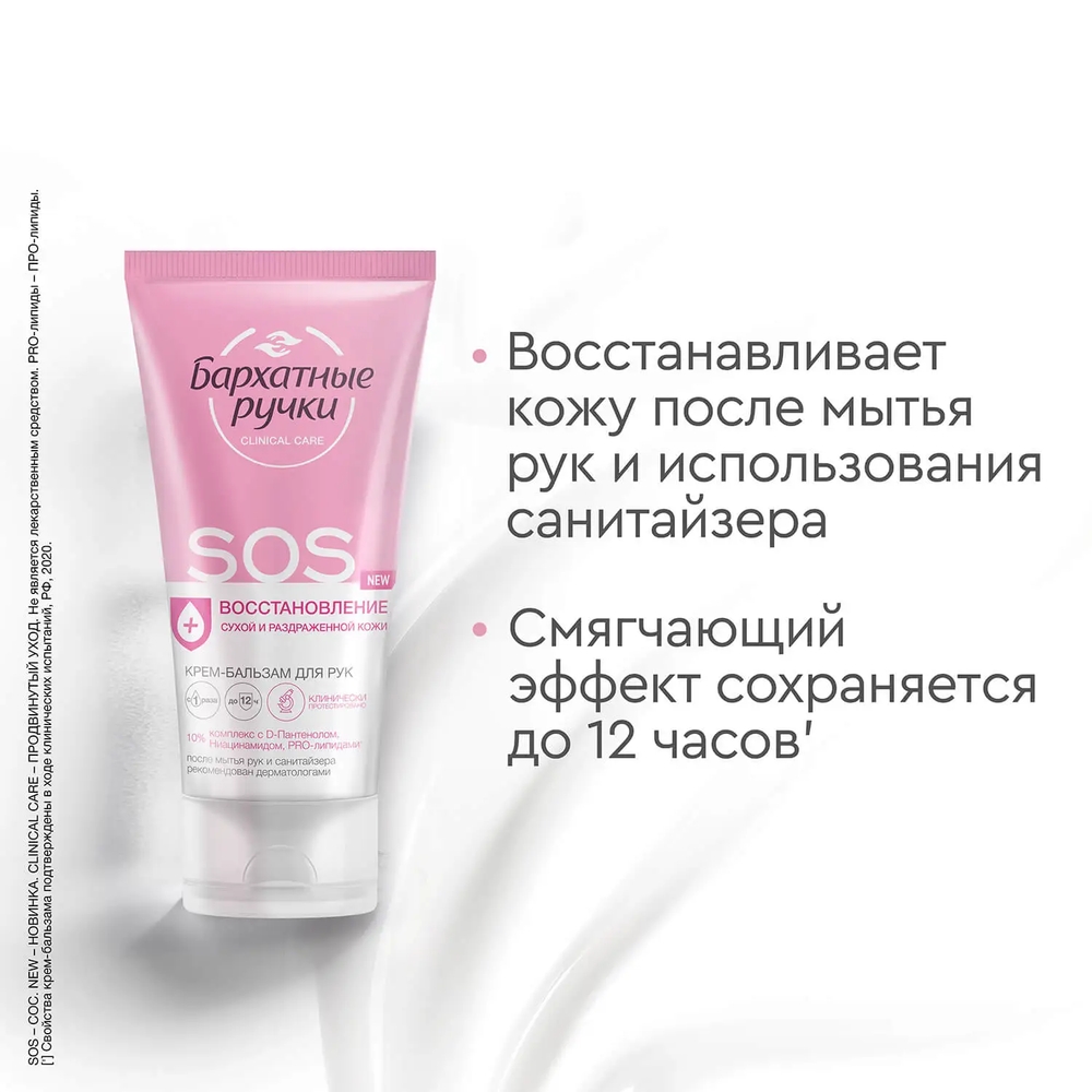 Бархатные Ручки Крем-бальзам для рук SOS восстановление из Санвэй - экстра-восстанавливающий крем-бальзам для рук глубокого действия устраняет причины появления сухости, быстро восстанавливает и надолго смягчает кожу. Подходит для очень сухой и потрескавшейся кожи. Активная концентрация витаминов, пантенола, экстракта алое-вера, обеспечивает максимально эффективное восстановление кожи рук. В результате на коже образуется особая дышащая защита, которая минимизирует влияние внешних факторов, способствует восстановлению барьерного слоя кожи, сохраняет свою эффективность даже после мытья рук. Впервые линия средств воздействует непосредственно на причины появления несовершенств на глубоком уровне, не только питая, но и преображая внешний вид кожи. Высокоэффективная концентрированная формула крем-бальзама комплексно воздействует на кожу рук.