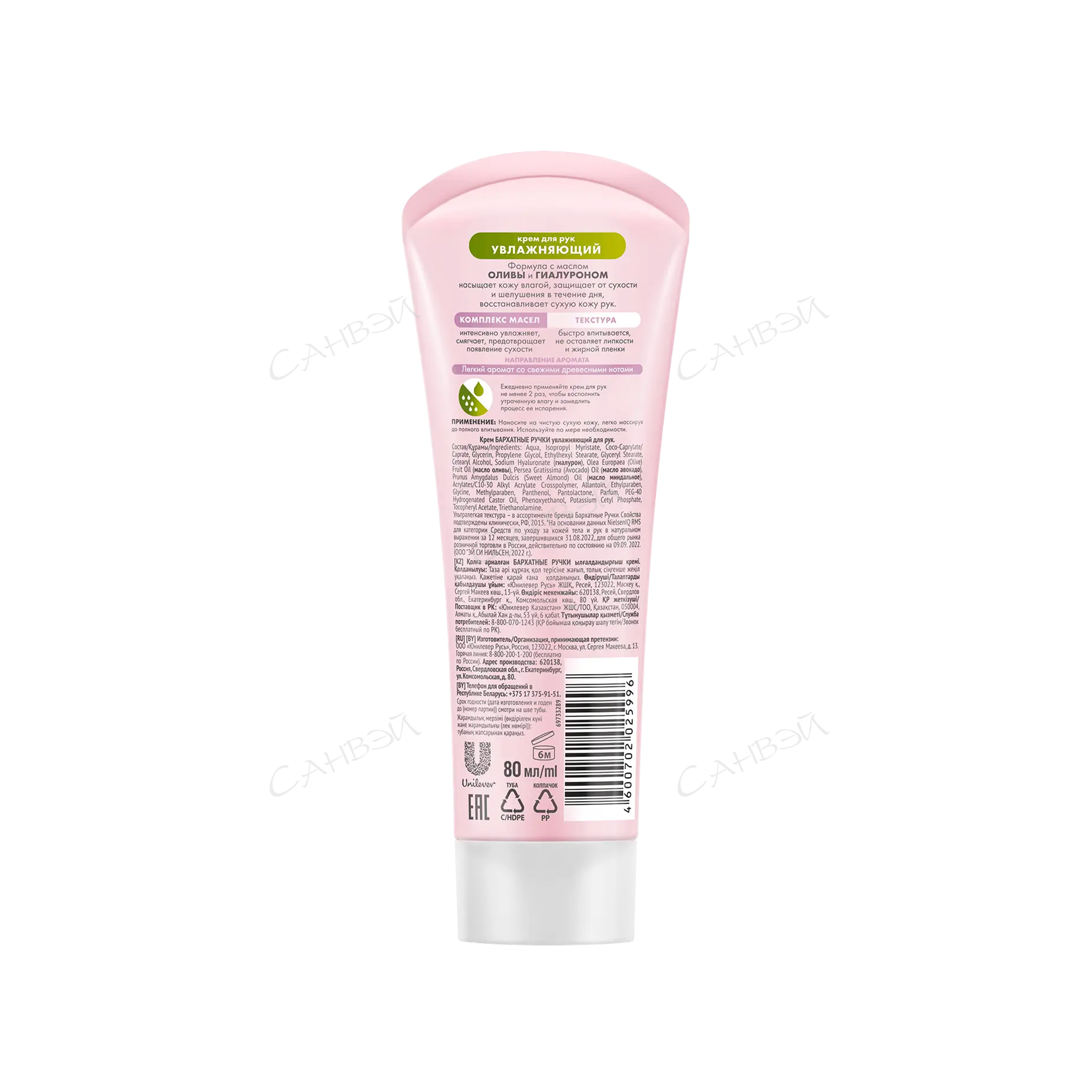 Формула крема с маслом оливы и гиалуроном насыщает кожу влагой, защищает от сухости и шелушения в течение дня, восстанавливает сухую кожу рук. Ежедневно применяйте крем для рук не менее 2-х раз, чтобы восполнить утраченную влагу и замедлить процесс ее испарения.