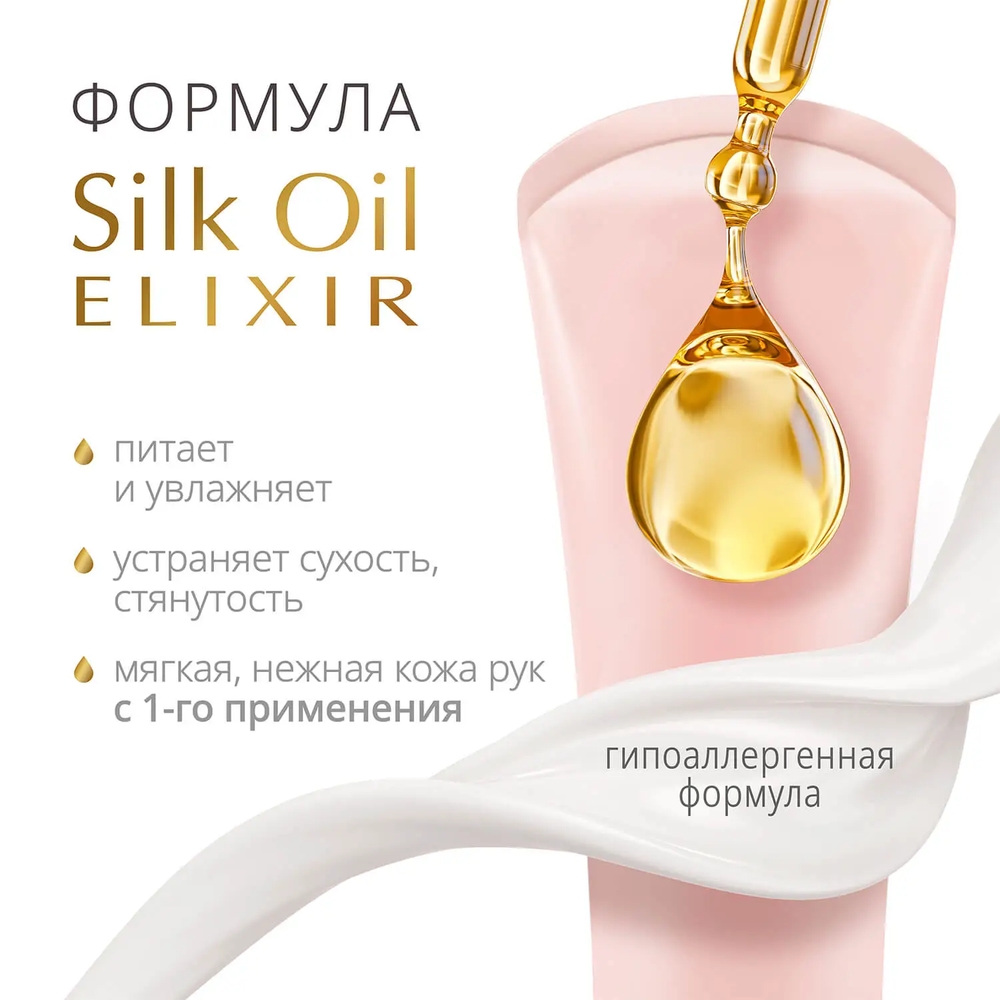 - Формула Silk Oil Elixir — Силк Ойл Эликсир усиливает действие крема. Микромасла восстанавливают клетки кожи и в комплексе с протеинами шелка делают ее мягкой и нежной.