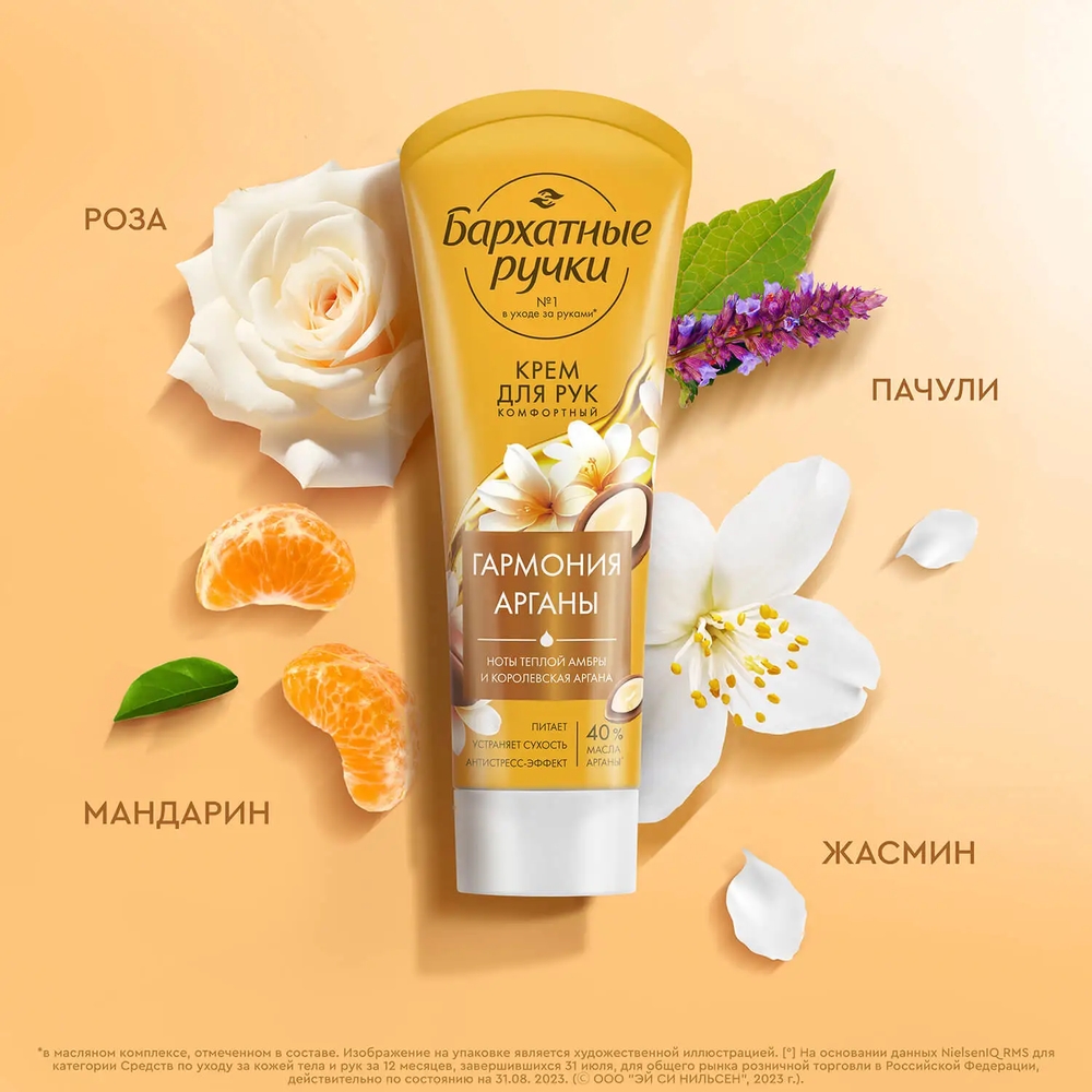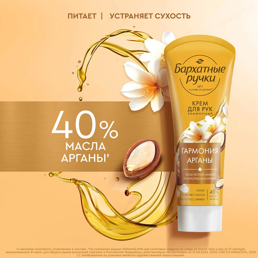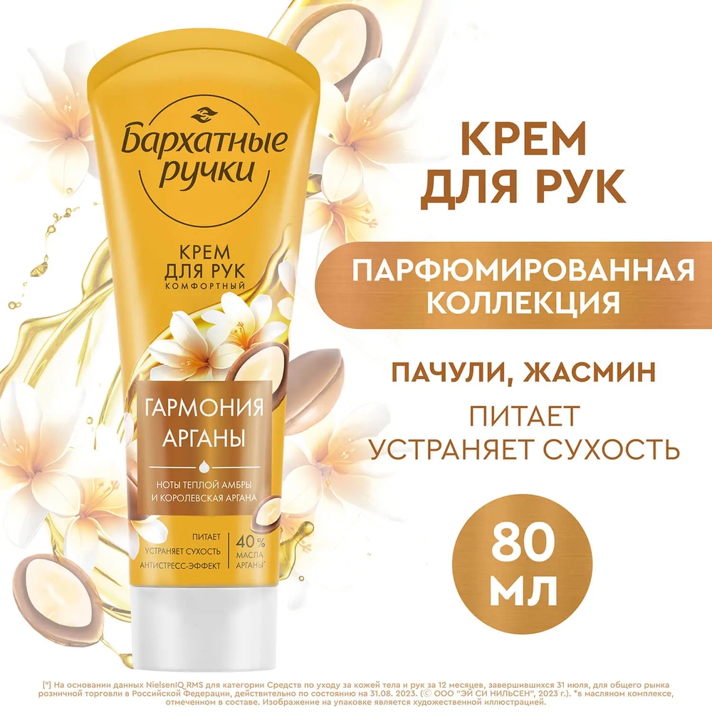 - Свойства продукта подтверждены в ходе потребительского тестирования. Так, 80% респондентов отметили, что крем оставляет ощущение ухода и комфорта, смягчает кожу в течение 48 часов; дарит ощущение гармонии. В составе нет спирта. Попробуйте всю серию продуктов Бархатные ручки и выберите любимые.