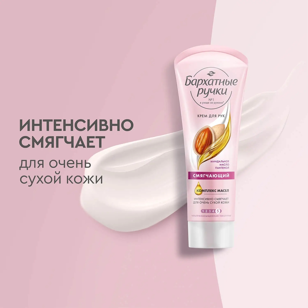 Наши руки очень часто испытывают стресс: перепады температуры, ветер, воздействие бытовой химии, сухой воздух отапливаемых помещений. Специально для требовательной кожи и холодного времени года эксперты бренда Бархатные ручки разработали Смягчающий крем. Наносите крем перед каждым выходом на улицу для экстразащиты кожи рук при воздействии неблагоприятных факторов среды.