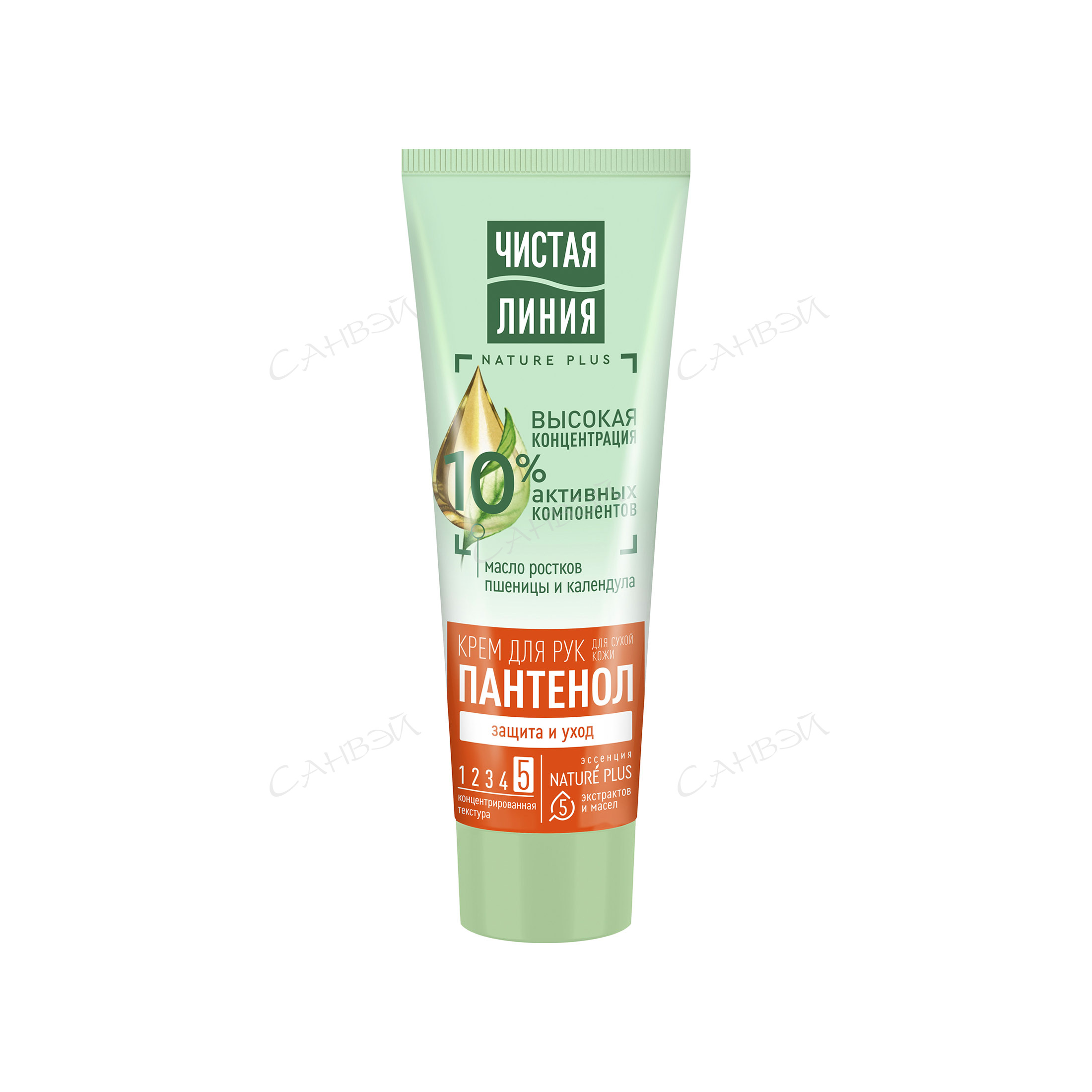 Чистая Линия крем для рук Пантенол Защита и уход для сухой кожи Пшеница и календула 75 мл из Санвэй на 97% состоит из компонентов натурального происхождения, имеет концентрированную текстуру и отлично подойдет для ухода за сухой кожей рук. В составе эссенция из 5 экстрактов и масел NATURE PLUS – НЕЙЧЕ ПЛЮС (экстракты вербены и пиона, масла миндаля, льна, оливы), пантенол, отвар трав, масло ростков пшеницы и протеины овса. 10%-я высокая концентрация активных компонентов. Активные натуральные компоненты эффективно и надолго устраняют сухость, интенсивно питают и увлажняют, восстанавливают и смягчают.