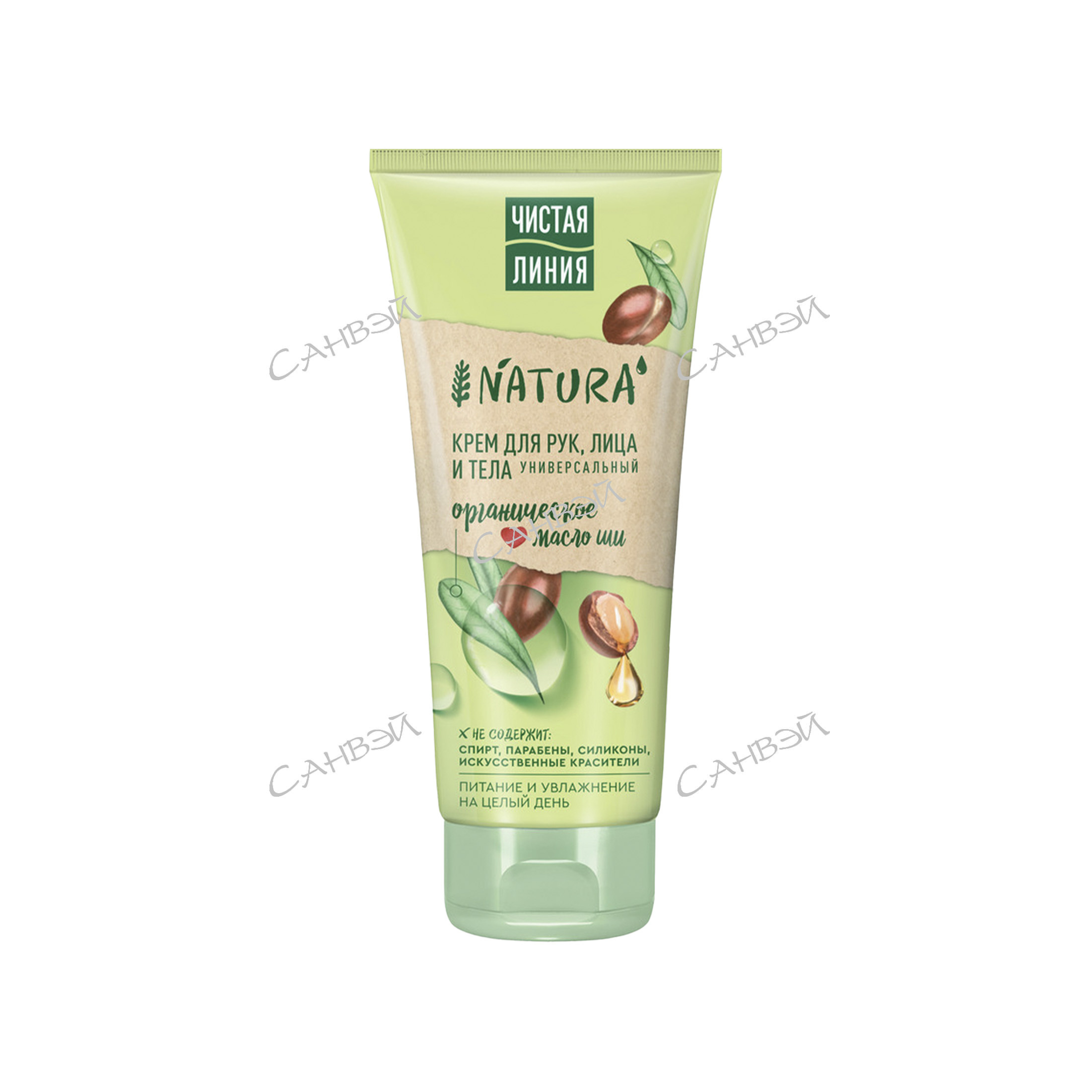 Универсальный крем Чистая Линия Natura для рук, лица и тела с organic масло Ши хорошо мгновенно увлажняет и смягчает кожу, успокаивает, защищает ее от воздействия солнечных лучей и способствует ее восстановлению, обладает противовоспалительной активностью и регенерирующими свойствами.