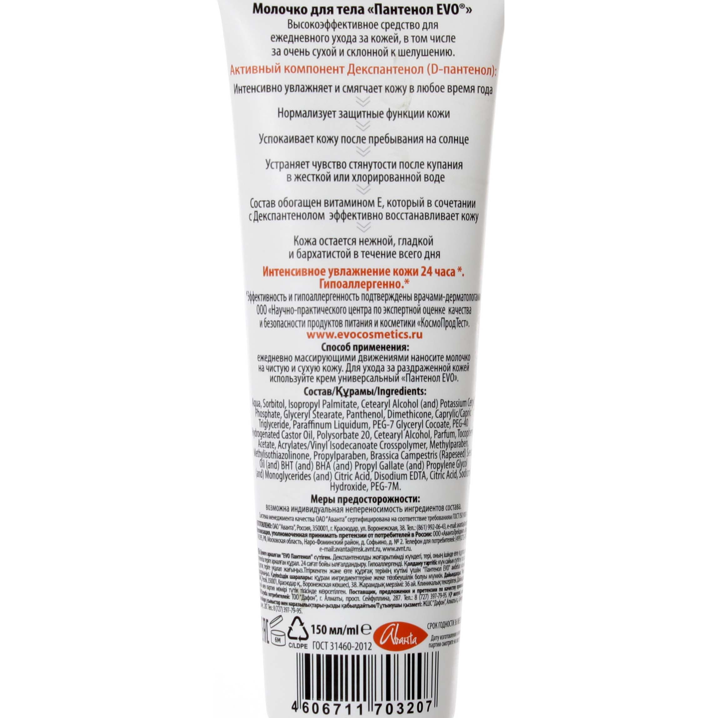 Легкими массирующими движениями ежедневно наносите небольшое количество молочка на чистую, сухую кожу. Для ухода за раздраженной кожей используйте Крем универсальный Пантенол EVO.