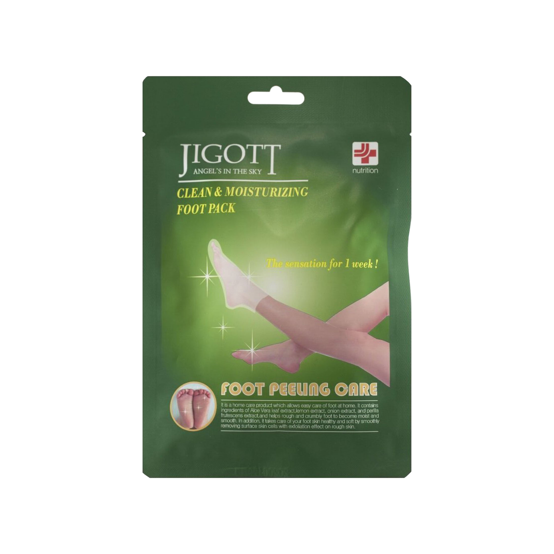 Очищающая и увлажняющая пилинг-маска для ног Jigott Clean & Moisturizing Foot Pack оказывает интенсивный уход за кожей ног в домашних условиях. В составе средства находятся экстракты листьев алоэ вера, экстракт лимона, экстракт репчатого лука и экстракт периллы, которые увлажняют и питают кожу ног, предотвращая появление сухости. Так же оказывает пилинг эффект и убирает огрубевшие участки кожи, даря коже здоровый и ухоженный вид.