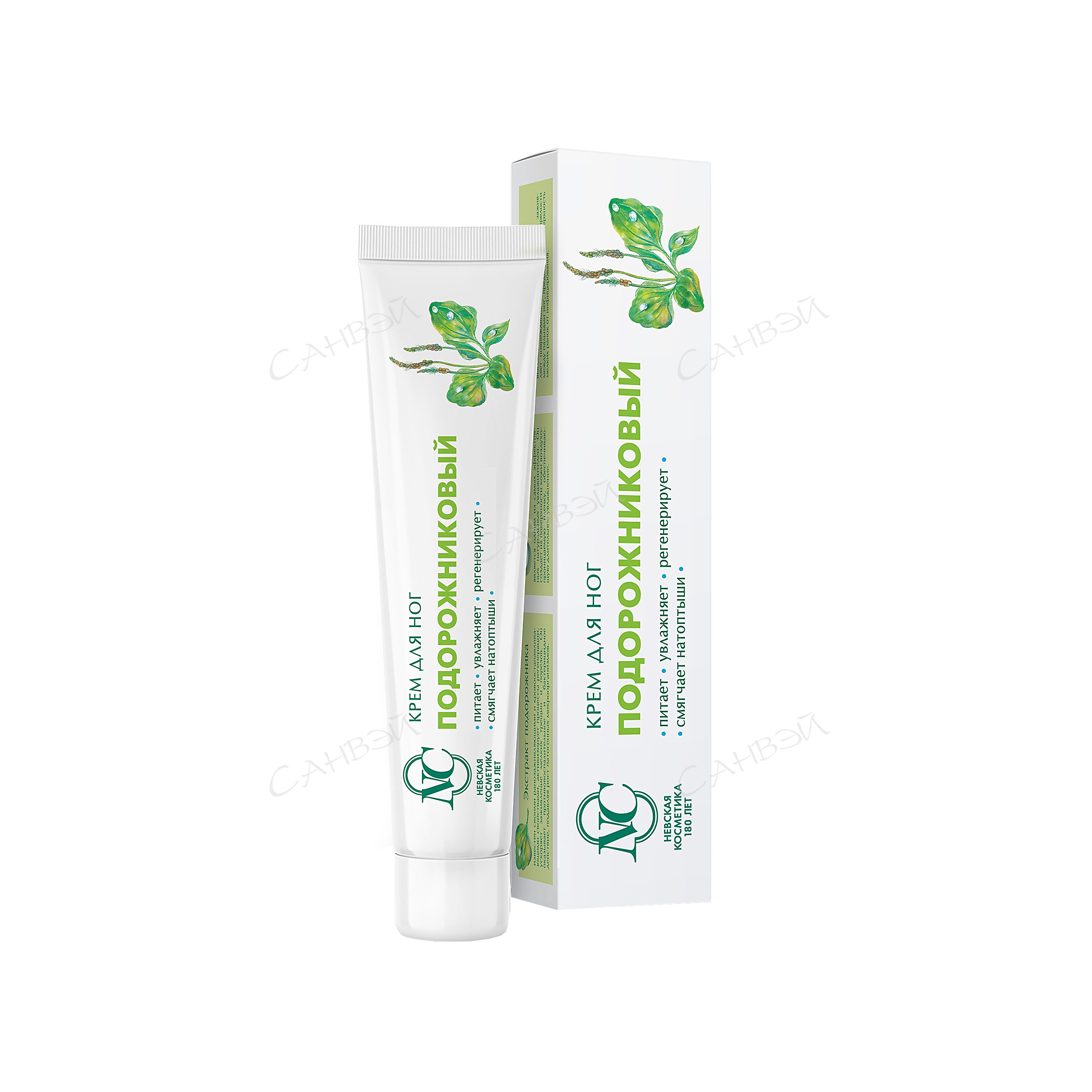 Невская Косметика Крем для ног Подорожниковый 50 мл из магазина Санвэй предназначен для эффективного ухода за кожей ног и ступней. Он увлажняет, питает и смягчает загрубевшую кожу. В состав крема входят натуральный экстракт подорожника, глицерин, ланолин и природный белок кератин.