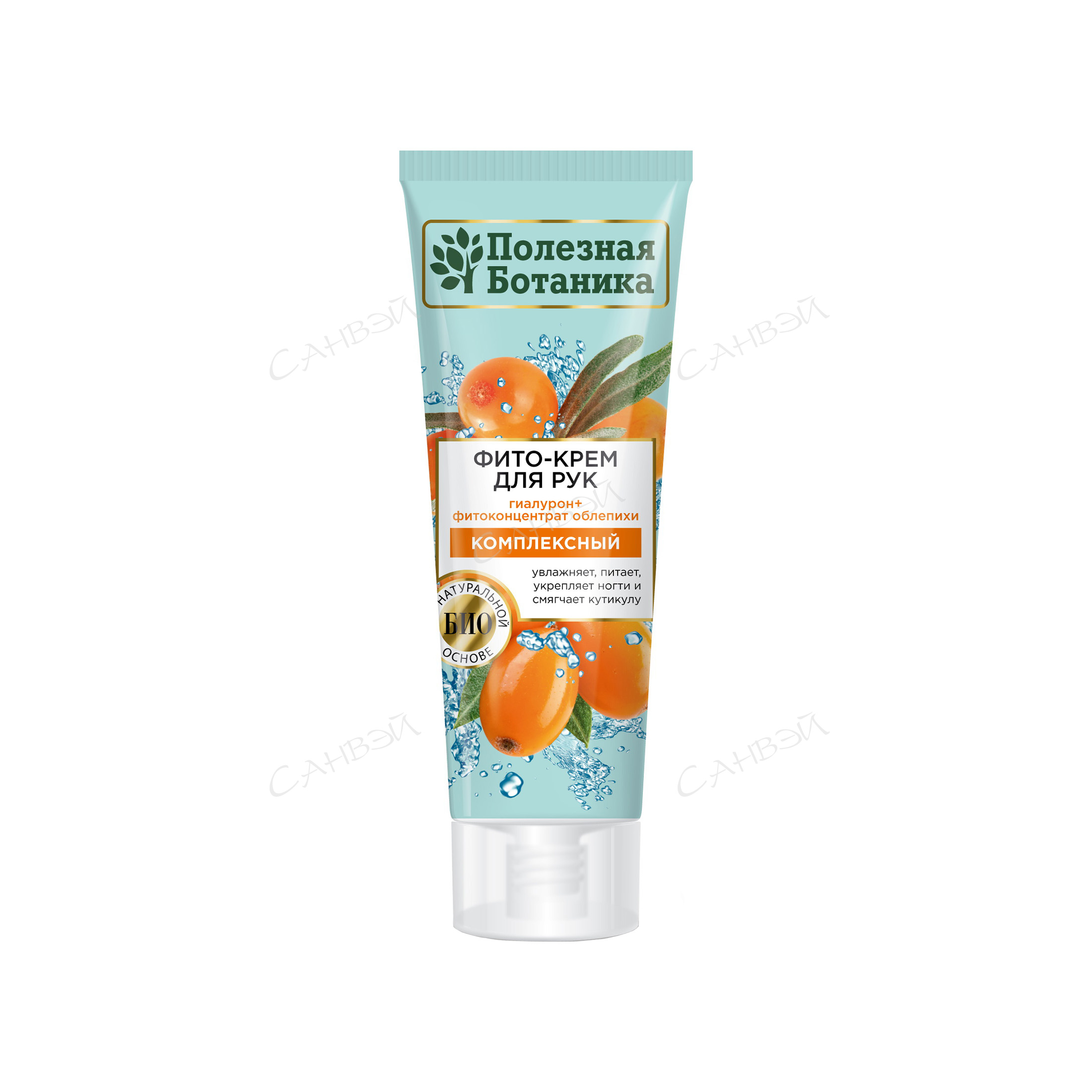 Полезная ботаника Крем для рук Комплексный с облепихой 75 мл насыщает кожу витаминами и минеральными веществами, обеспечивает необходимое питание и увлажнение. При нанесении на ногти смягчает кожу кутикул. Кератин укрепляет ногтевую пластину. Гиалурон повышает упругость кожи, предотвращая преждевременное старение.