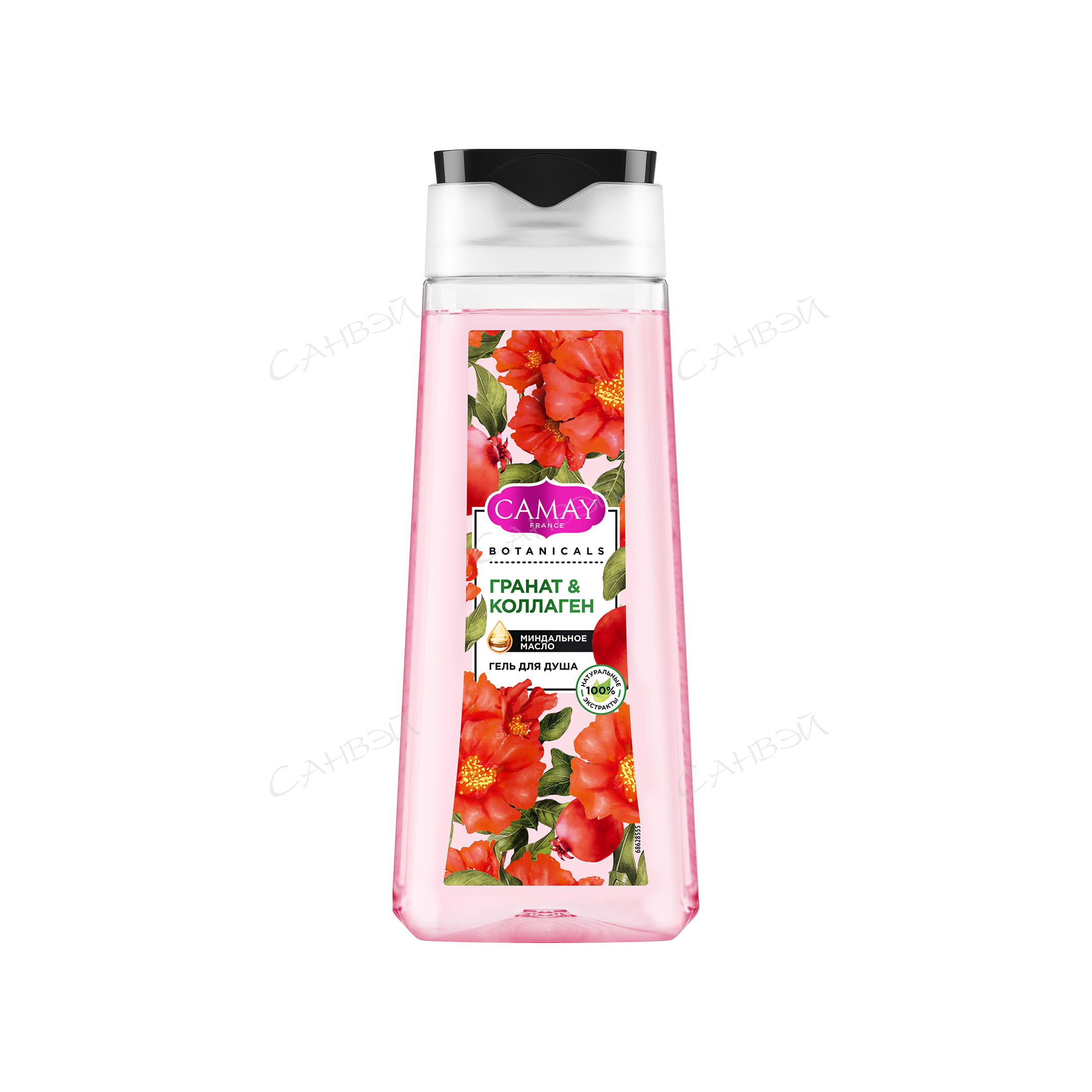 Camay Гель для душа Botanicals Цветы граната 250 мл с соблазнительным ароматом цветов граната содержит натуральные компоненты, нежно очищает и помогает расслабиться. Гель имеет 100% натуральную основу. Миндальное масло увлажняет и защищает кожу, а коллаген способствует гладкости кожи.