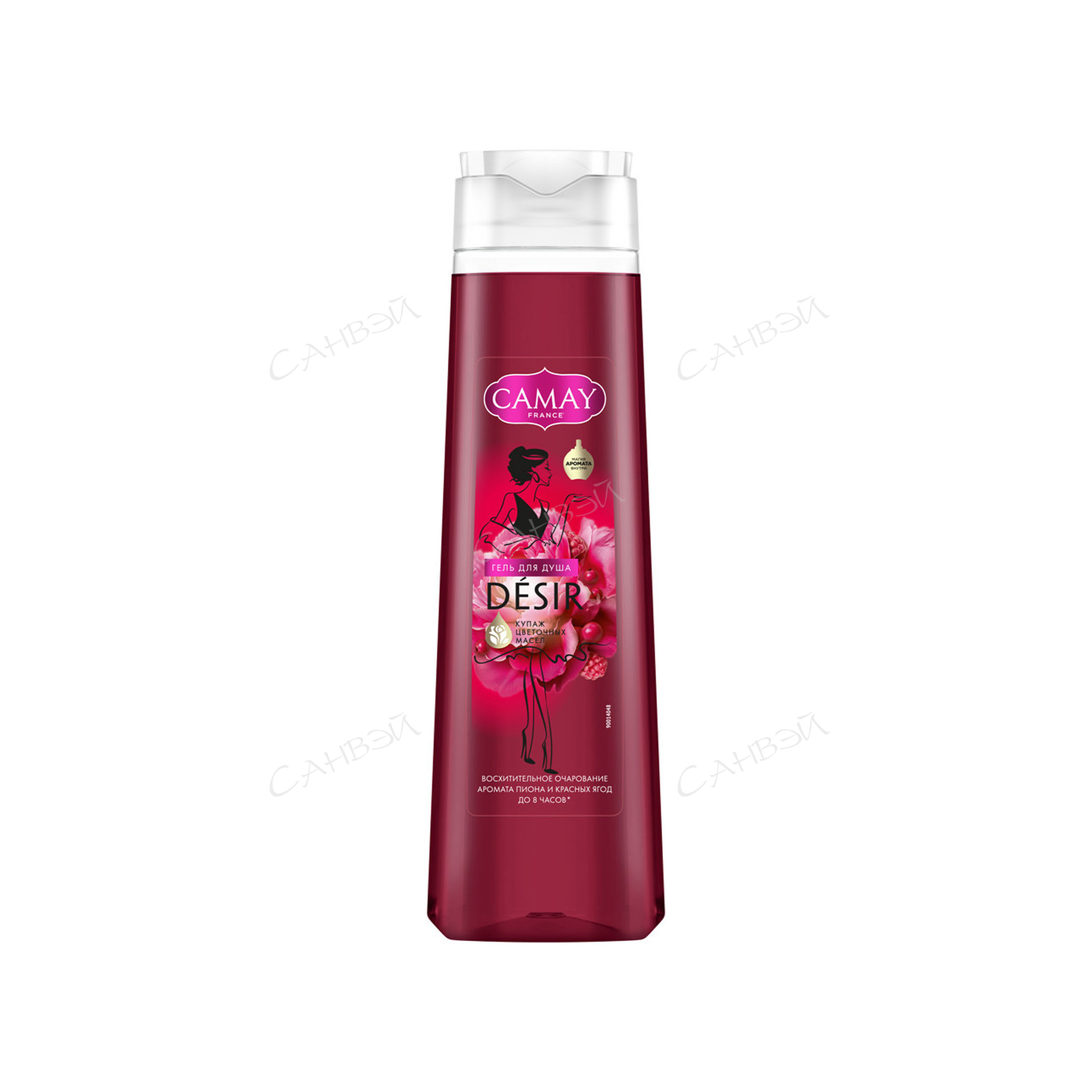 Гель для душа парфюмированный женский Camay DESIR Восхитительное очарование 400 мл - это уходовое средство-новинка с ароматом пиона и красных ягод. Парфюмерный гель для душа Camay из Санвэй имеет состав, обогащенный цветочными маслами. Ароматизированный гель для душа подарочный содержит эфирные масла лаванды, иланг-иланга, душицы.