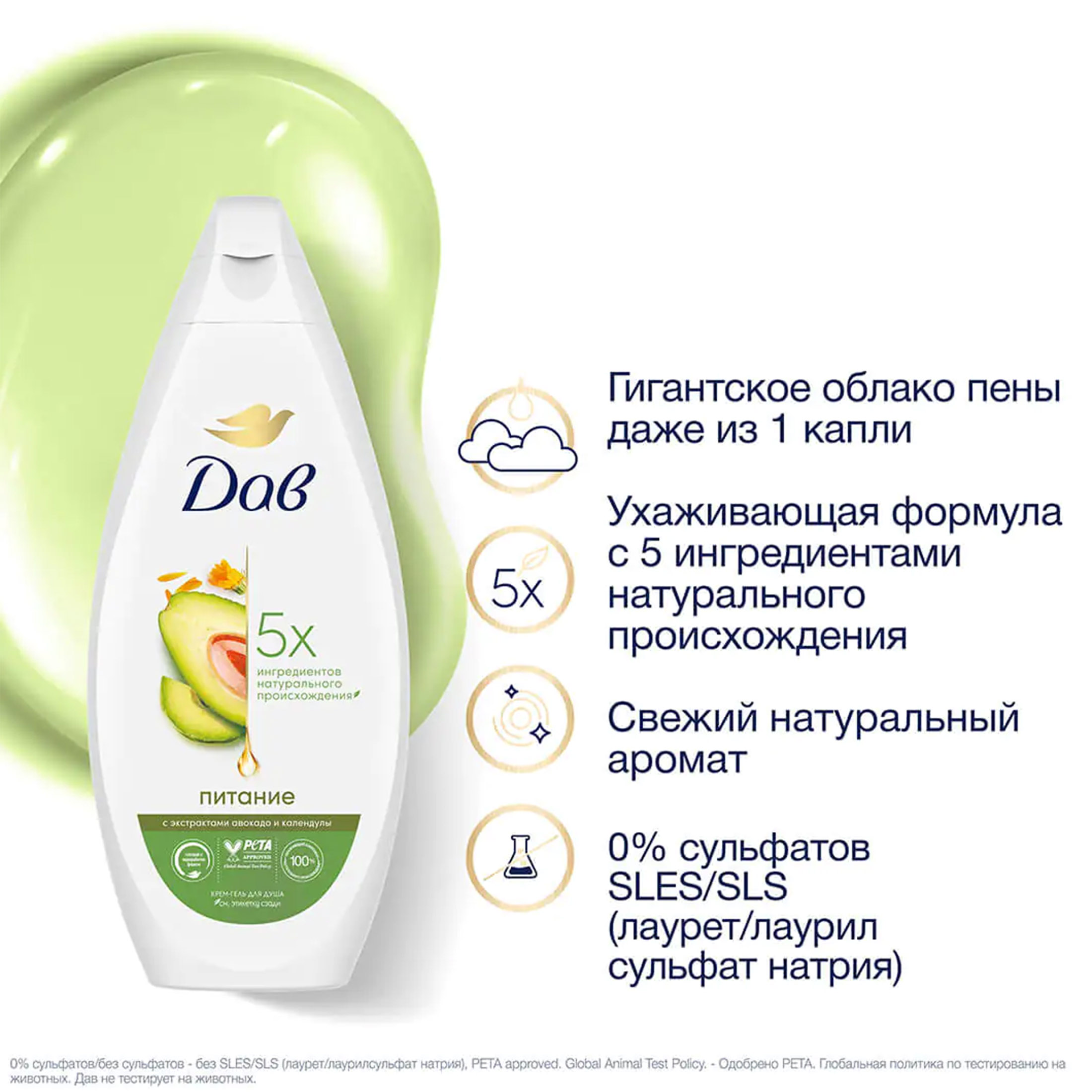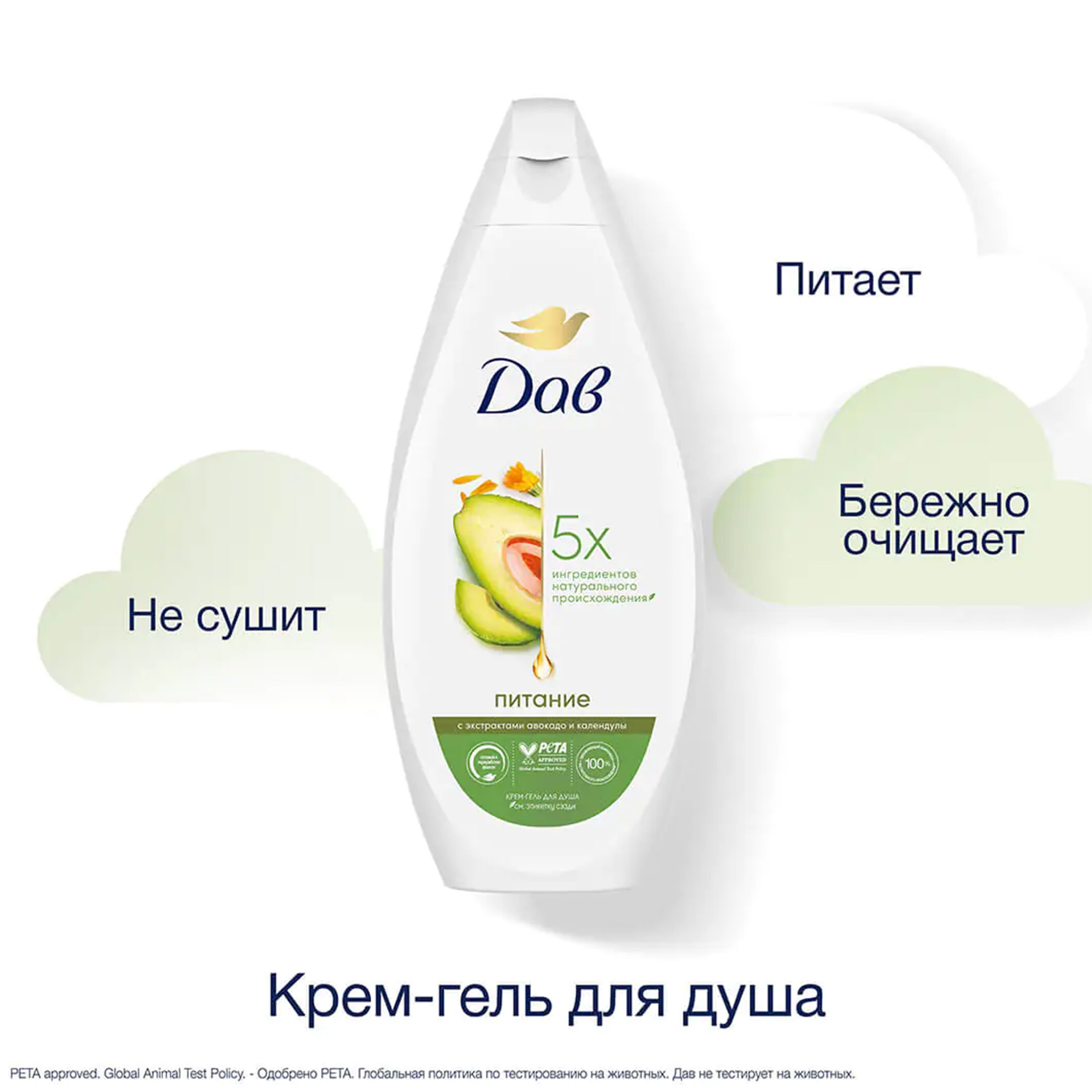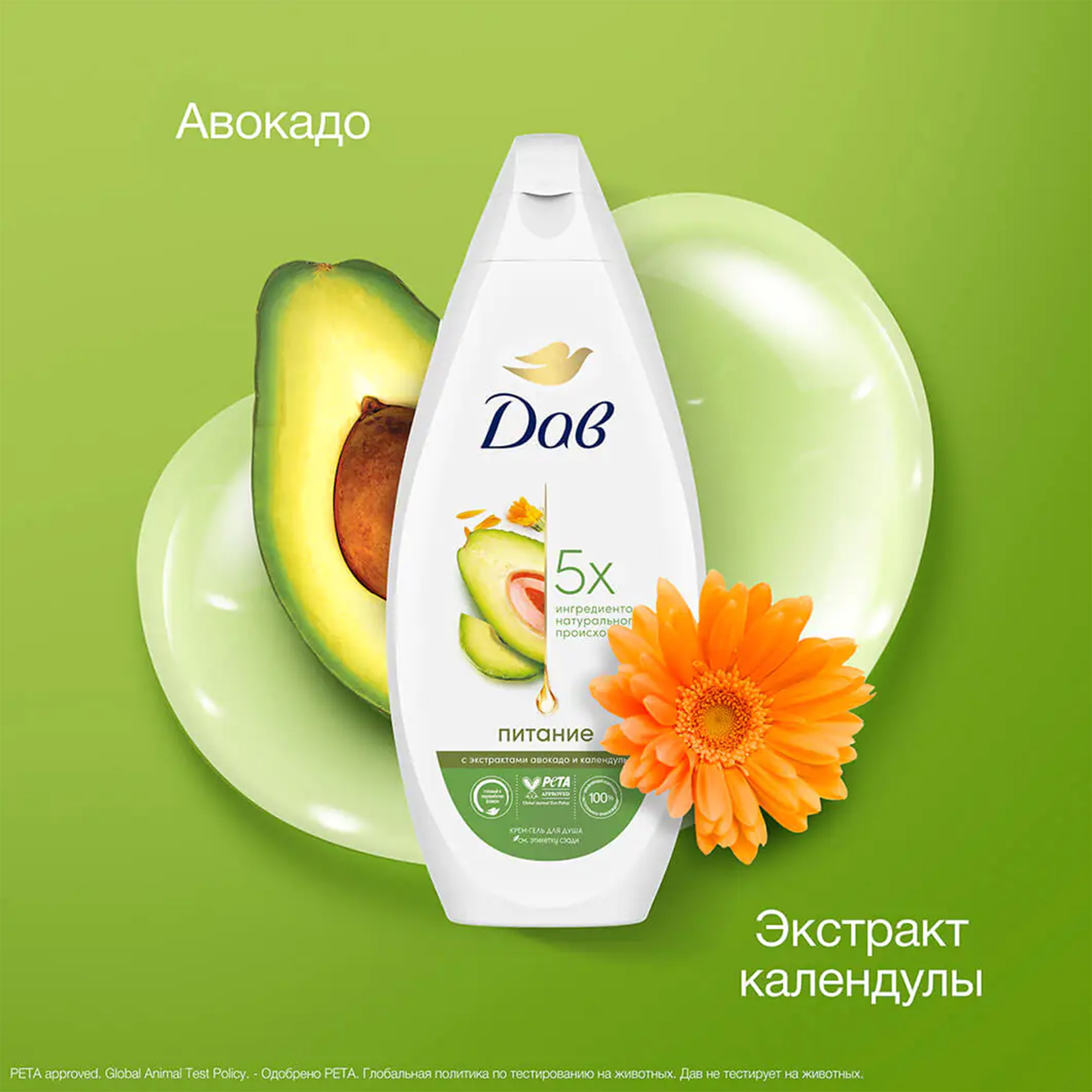Ухаживающая формула с маслом авокадо и экстрактом календулы тонизирует и питает Вашу кожу, делая ее более мягкой и гладкой сразу после душа. Подарите своей коже глубокое питание и наполните ее энергией вместе с крем-гелем для душа Дав Ритуалы красоты с маслом авокадо и экстрактом календулы.