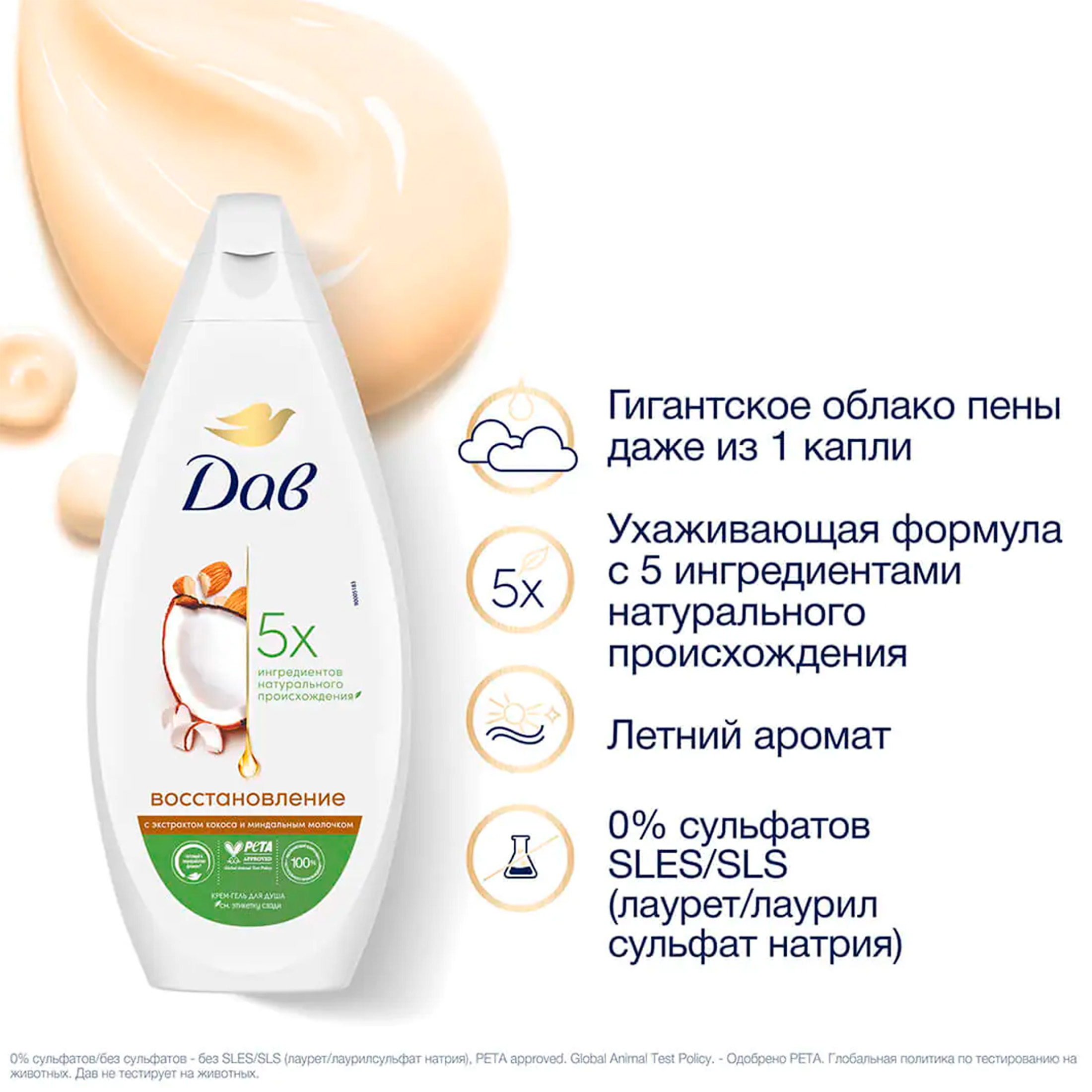 Крем-гель для душа Дав Ритуал красоты Кокос и Масло миндаля 250 мл в интернет-магазине Санвэй интенсивно смягчает Вашу кожу прямо в душе благодаря питающей силе Дав, усиленной природным блендом кокосового масла и миндального молочка. Результат - восхитительно гладкая кожа. Обладает успокаивающим нежным ароматом.