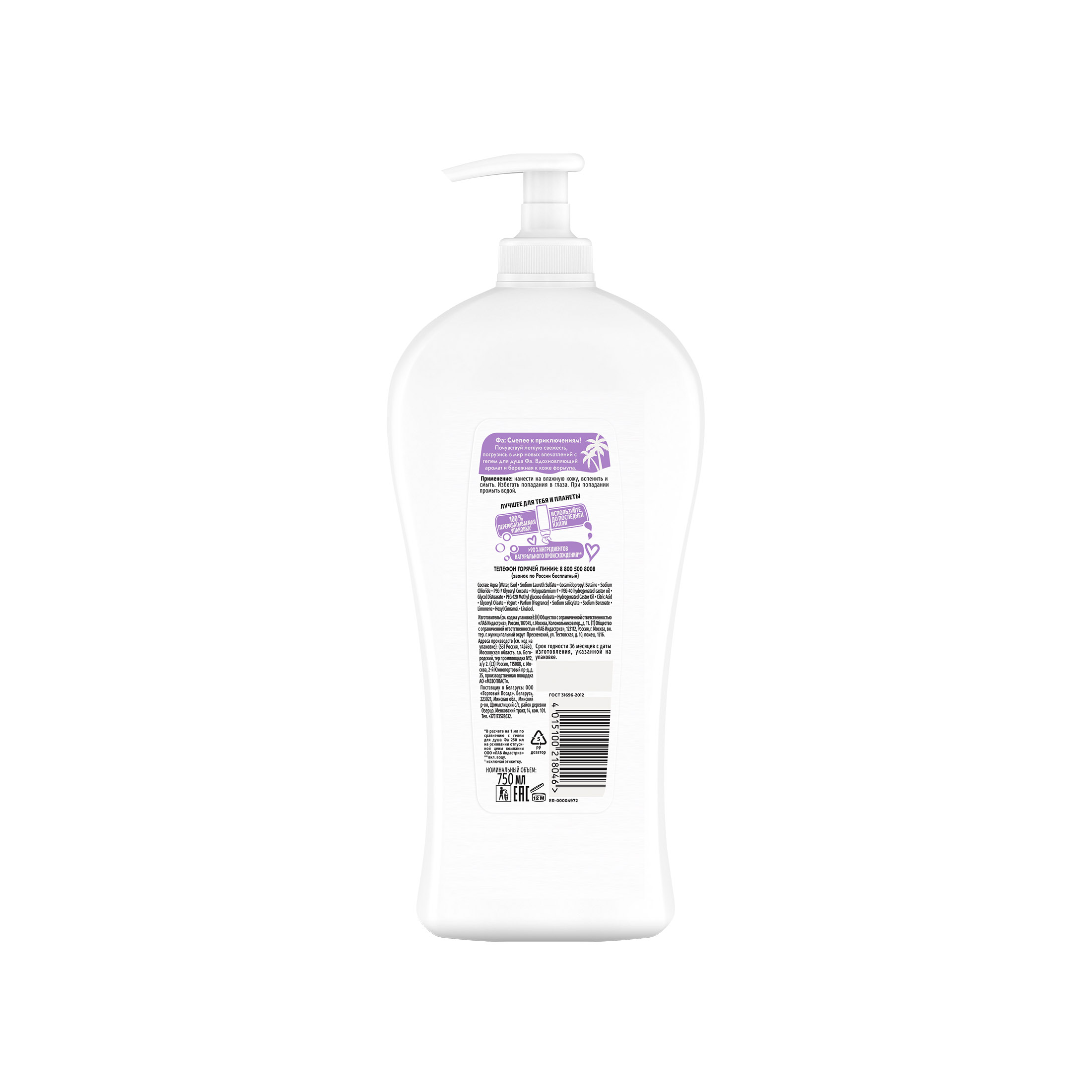 Почувствуй легкую свежесть, погрузись в мир новых впечатлений с ухаживающим крем-гелем для душа Фа. Вдохновляющий аромат и бережная к коже формула. аромат черники; >94% ингредиентов натурального происхождения; содержит пребиотики;