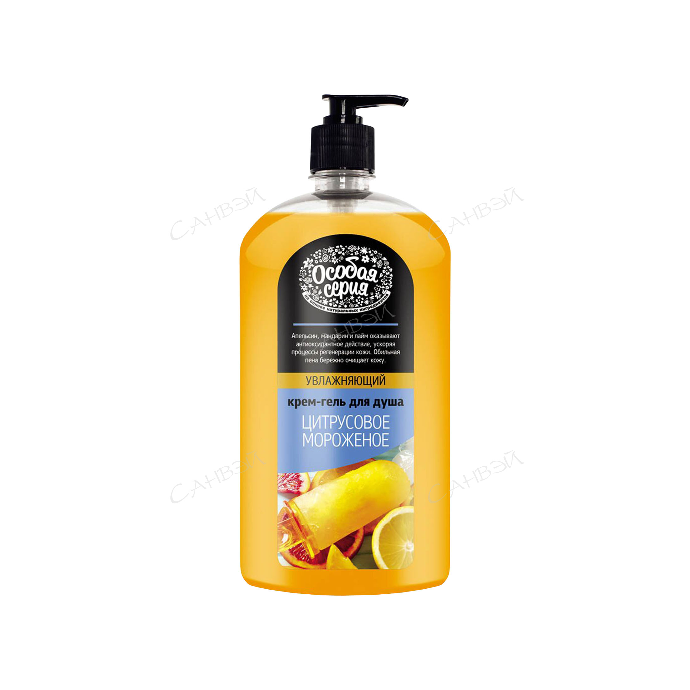 Нежная кремовая структура геля для душа Цитрусовое мороженое 1,2 л в сети магазинов Санвэй насыщена обволакивающим ароматом цитрусового мороженого. Изысканные нотки спелого апельсина, сочного мандарина и искрящегося лайма поднимут настроение, пробуждая приятные воспоминания детства. Цитрусовые фрукты, благодаря большому количеству витаминов, способствуют прекрасному увлажнению кожи, придают ей мягкость и бархатистость. Крем-гель для душа бережно очищает кожу, создавая обильную ароматную пену и пробуждая фантазии о путешествии в далекие южные страны.