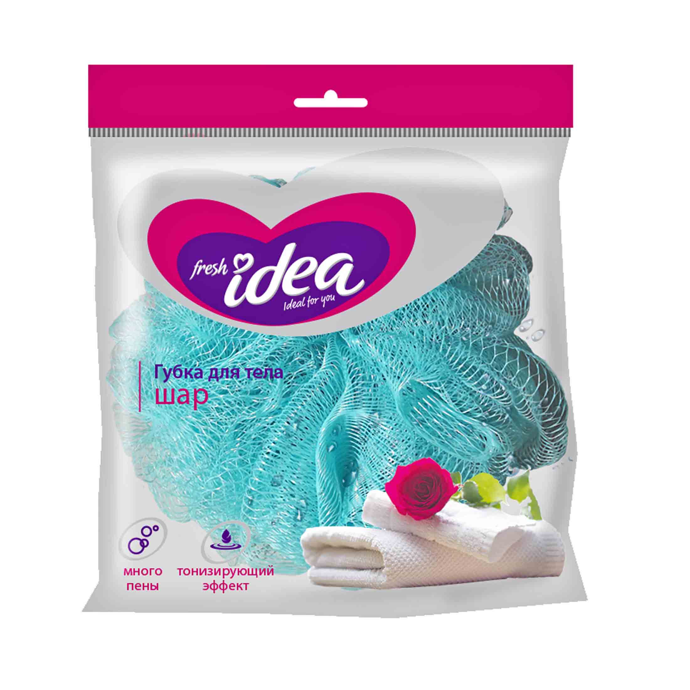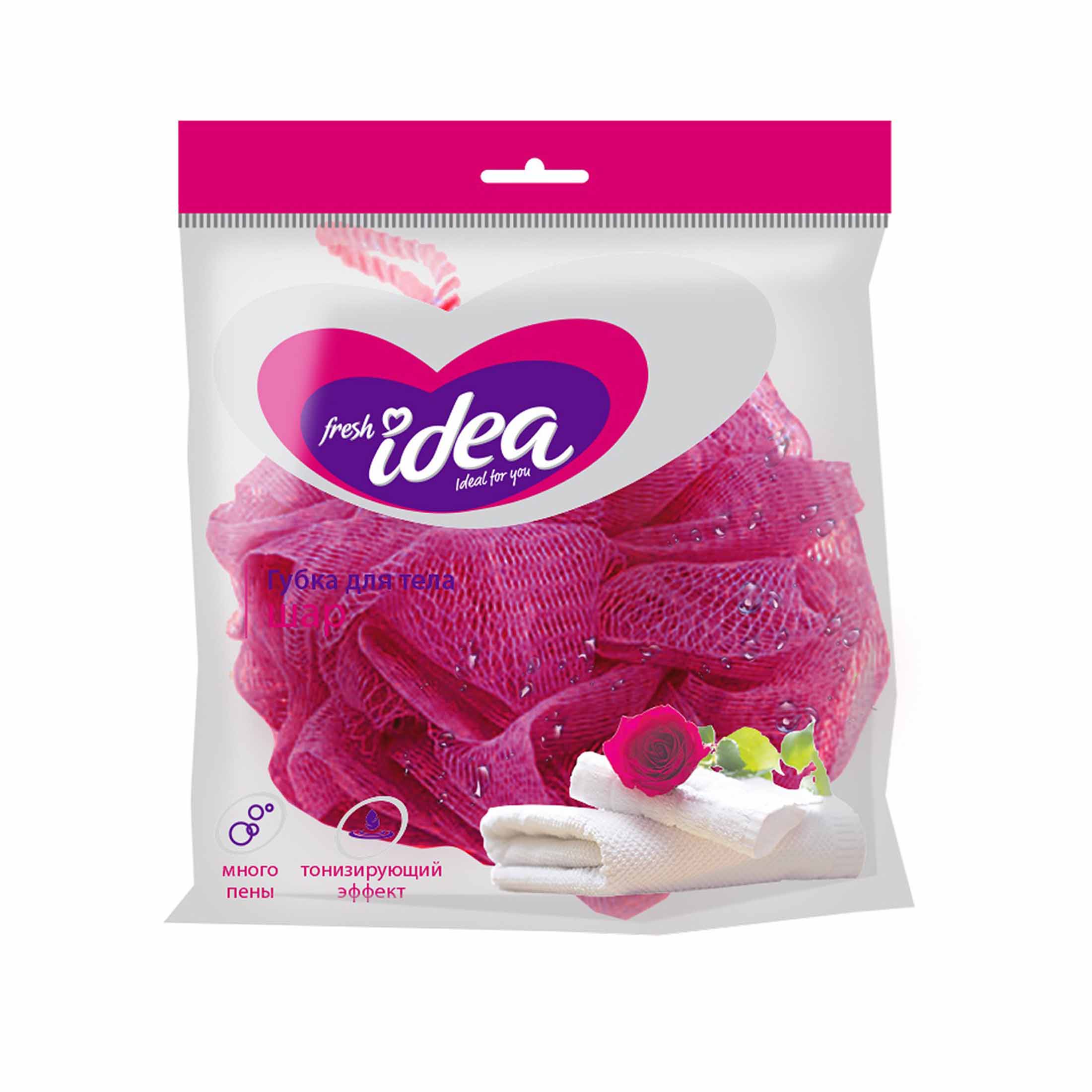 Мочалка сетка шар тонизирующ. д/тела нейлон розовый 7*15*16см Фреш Идея п/э 1 шт / 50шт / С0006294 / 975217