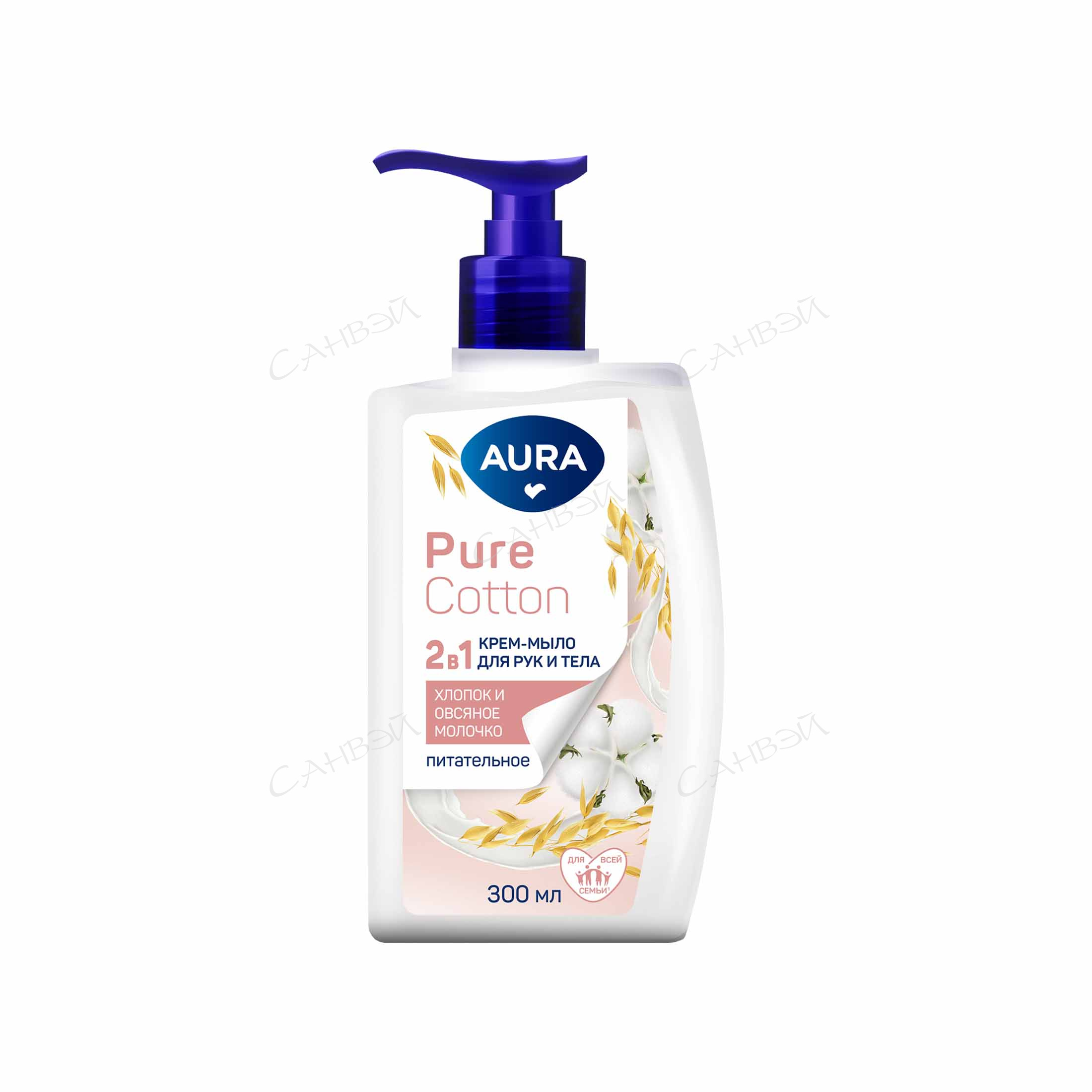Aura Pure Cotton мыло жидкое 2в1 кремов. 300мл питан. д/рук и тела хлопок,овсян.молочко дозатор 1шт / 12шт / 12832 / 015036