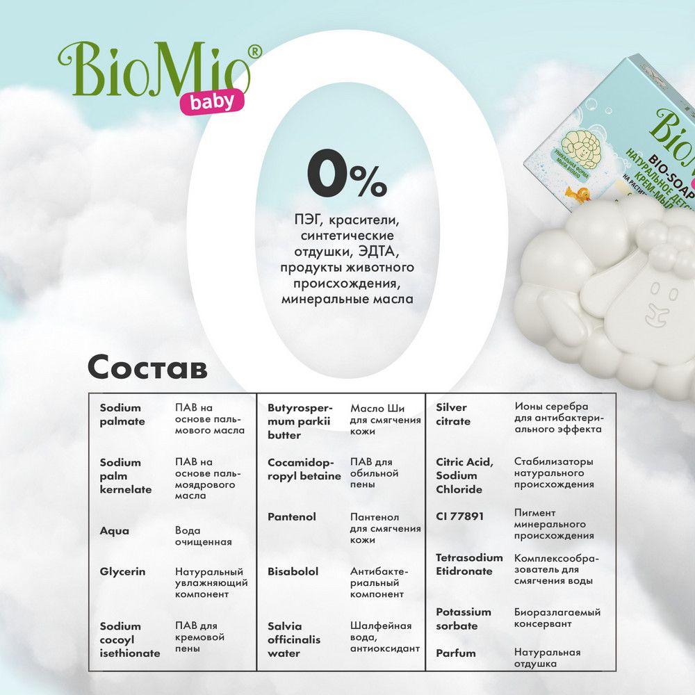 BioMio Экологичное детское туалетное крем-мыло твердое, с маслом ши, 90 г из Санвэй предназначено для использования с самых первых дней жизни. Идеально для кожи малыша!