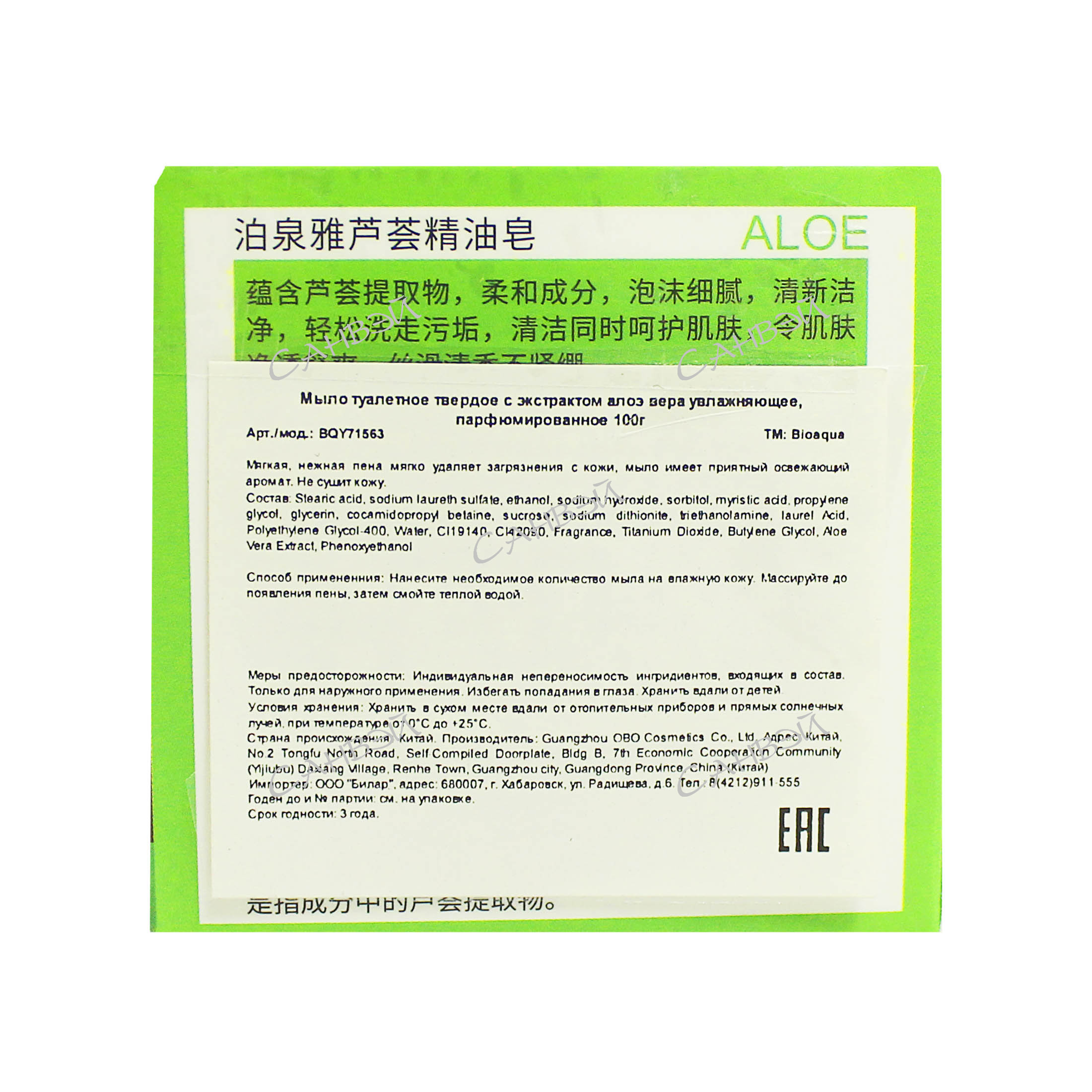 OBO Bioaqua мыло твердое 100 гр. увлажн.,очищ. д/в тип.кожи экст.алоэ карт./уп 1шт / 144шт / BQY71563 / 271563