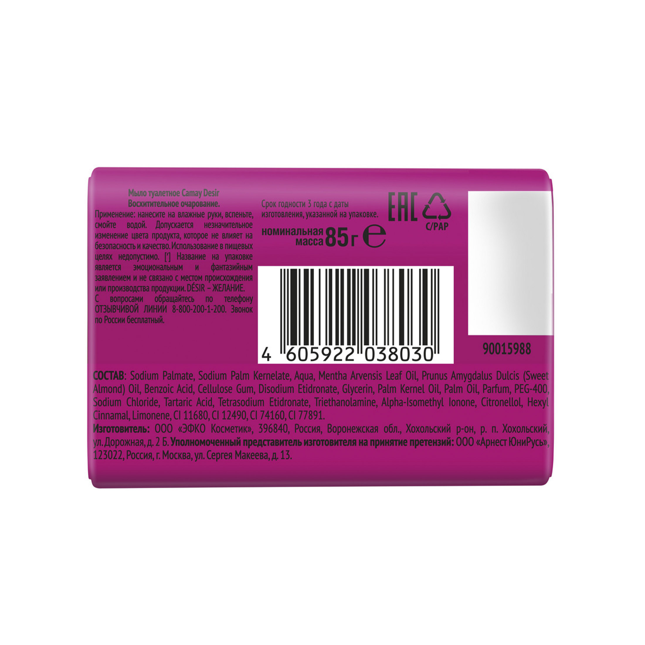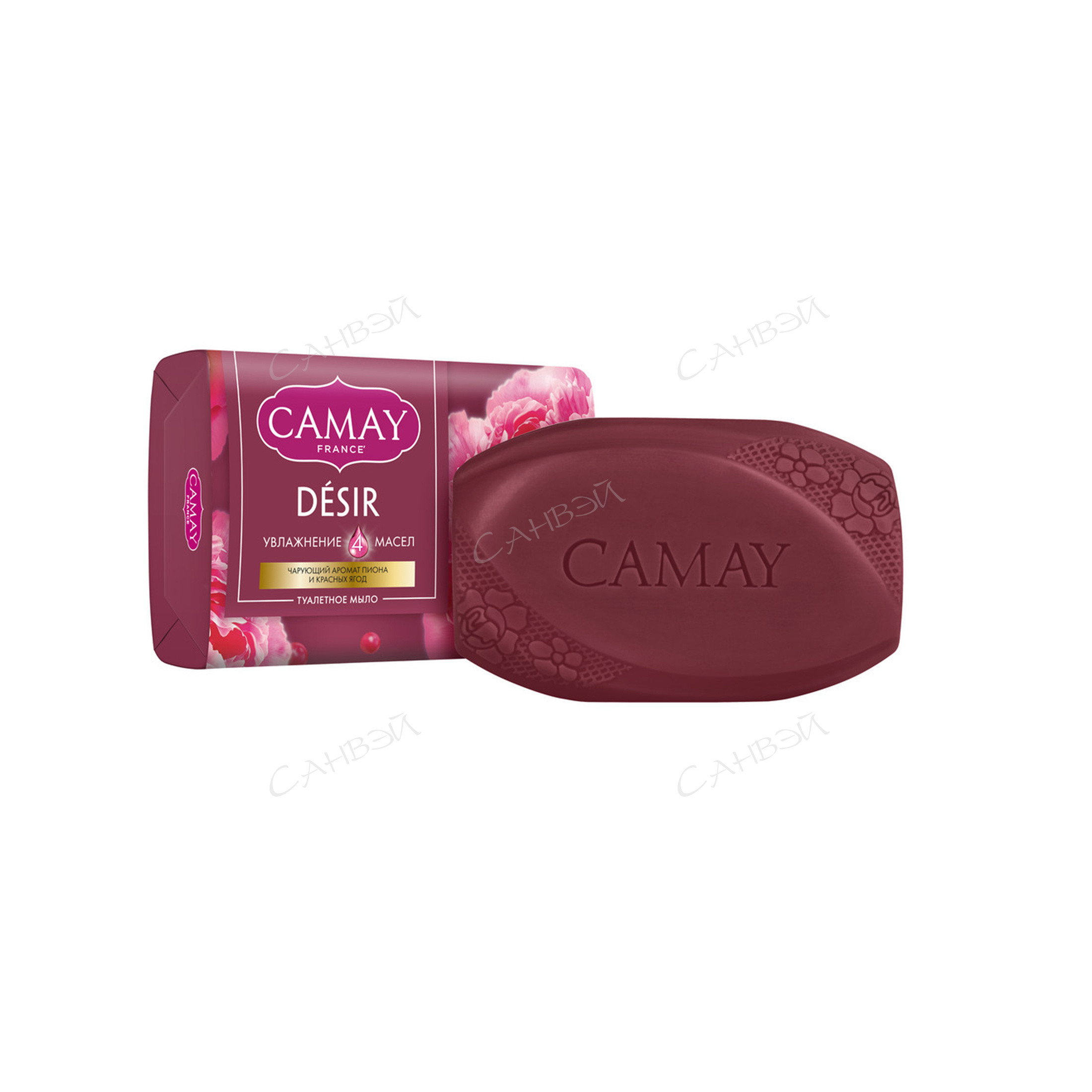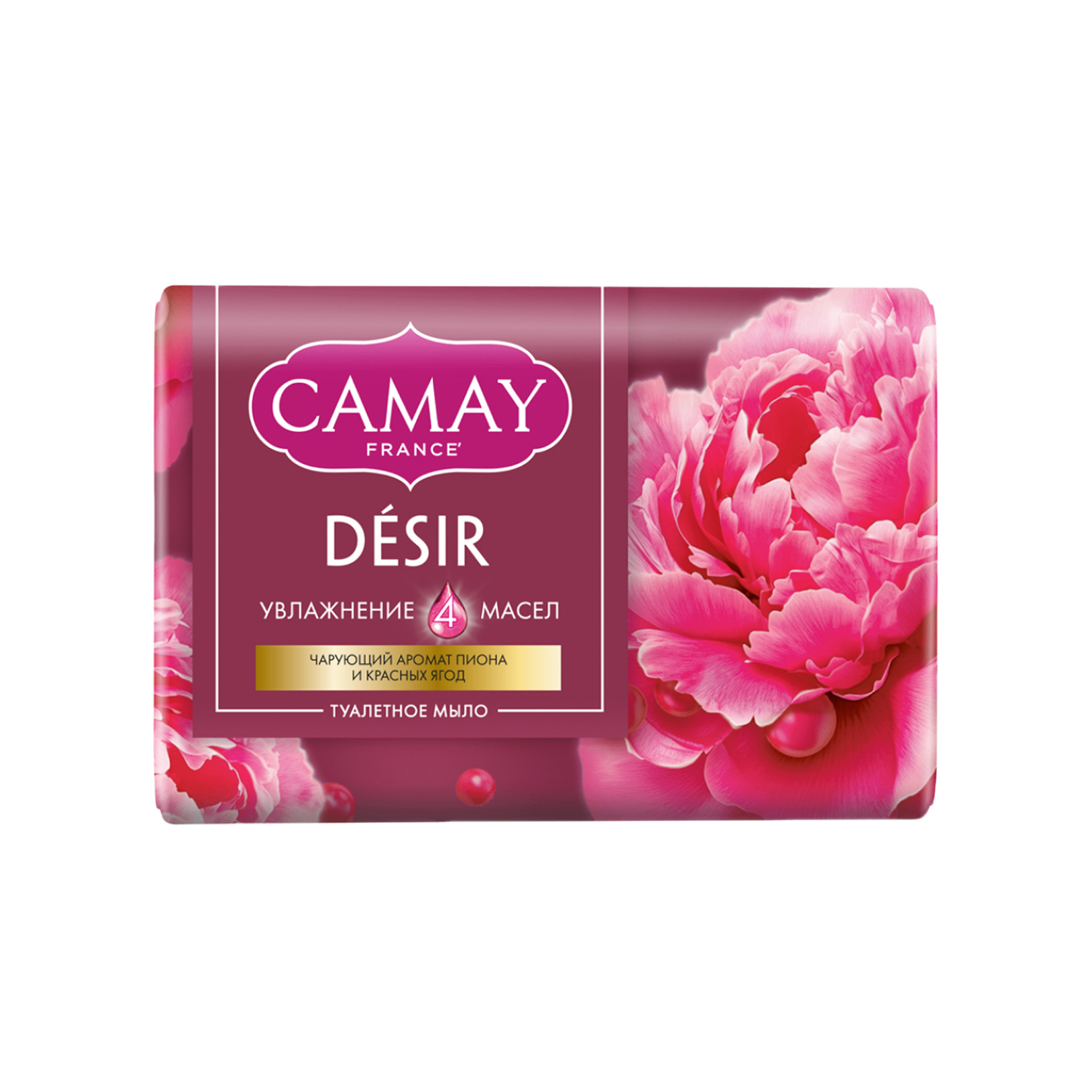 - Мыло туалетное кусковое ароматное Camay DÉSIR Восхитительное очарование – это практичный подарок для женщин и девушек на любой праздник и просто так, без повода. Можно подарить мыло парфюмированное твердое своей жене и маме, сестре и коллеге. Мыло подарочное с ароматом пиона и красных ягод понравится вашим родным, близким, подругам.