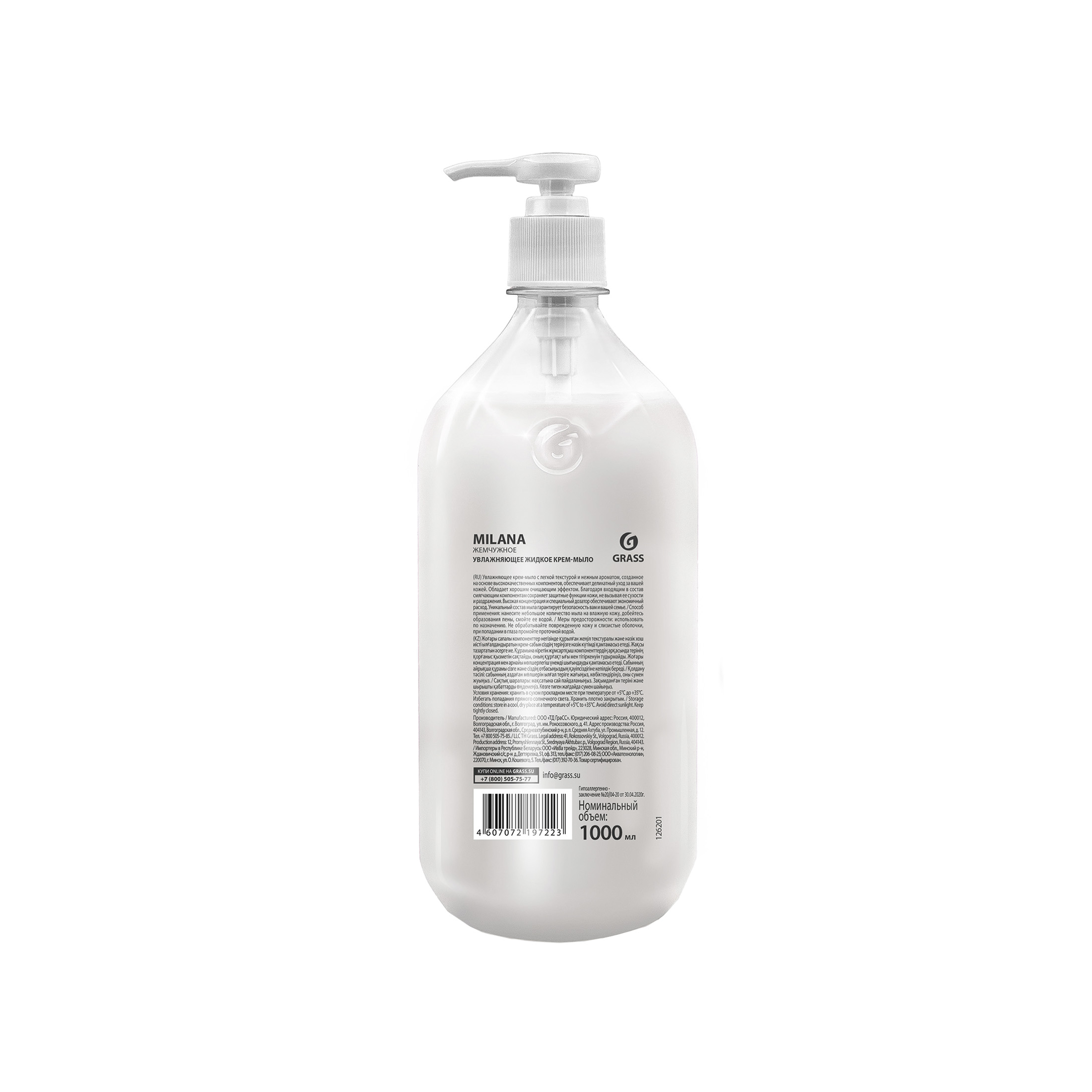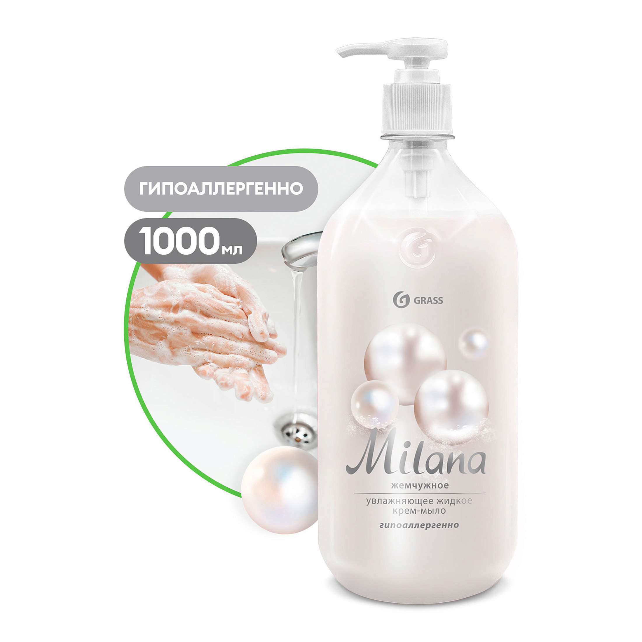Grass Milana Жемчужное мыло жидкое кремов. 1л гипоалл.,увлажн. д/рук дозатор 1шт / 6шт / 126201 / 197223