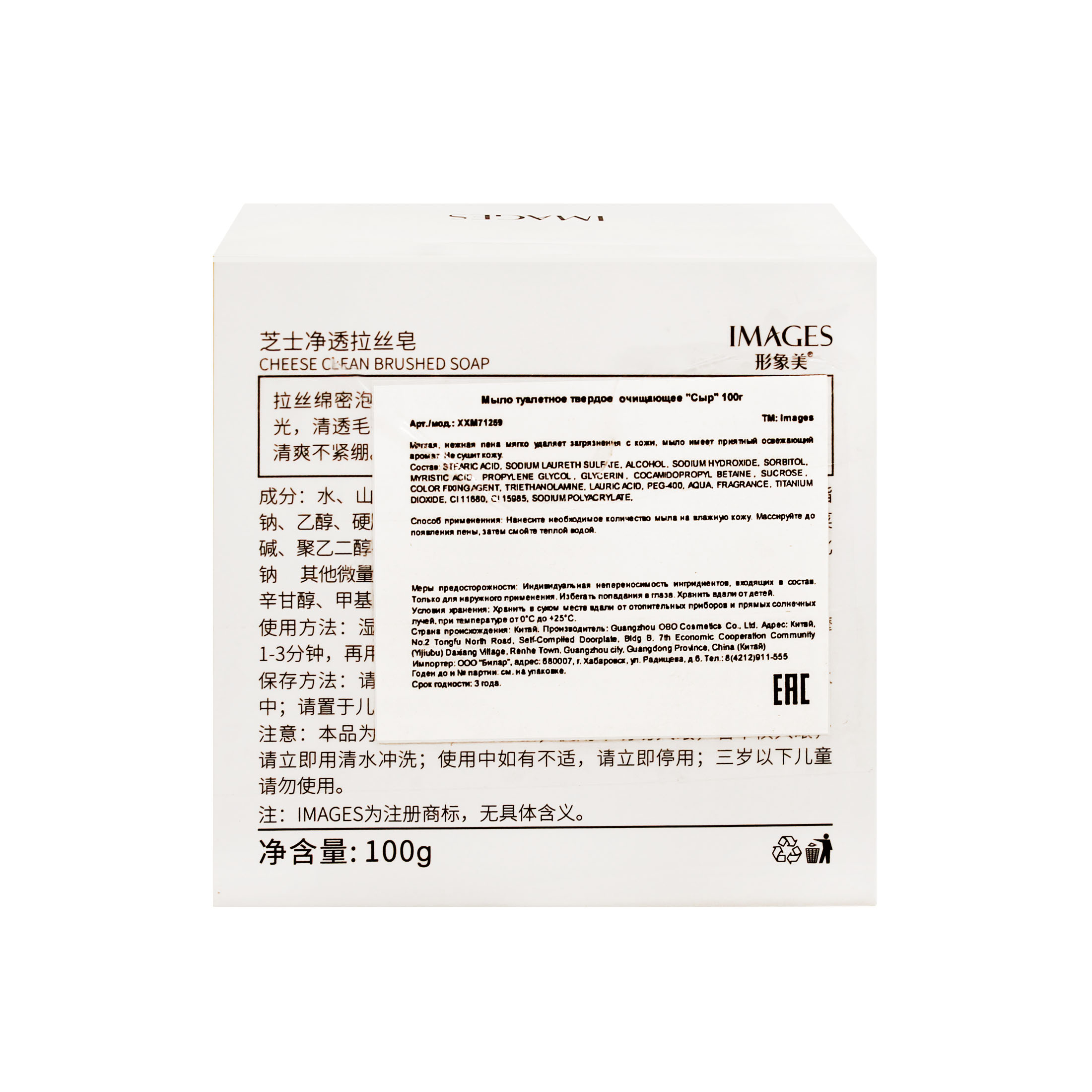 OBO Images Сыр мыло твердое 100 гр. очищ. д/в тип.кожи карт./уп 1шт / 144шт / XXM71259 / 271259