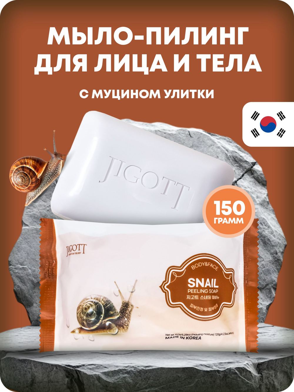 Jigott Мыло твердое отшелушивающее с муцином улитки 150 гр. из магазина Санвэй - это мягкое и эффективное средство для очищения и обновления кожи лица. Благодаря содержанию муцина улитки мыло способствует мягкому удалению омертвевших клеток и загрязнений, одновременно питая и восстанавливая кожу.