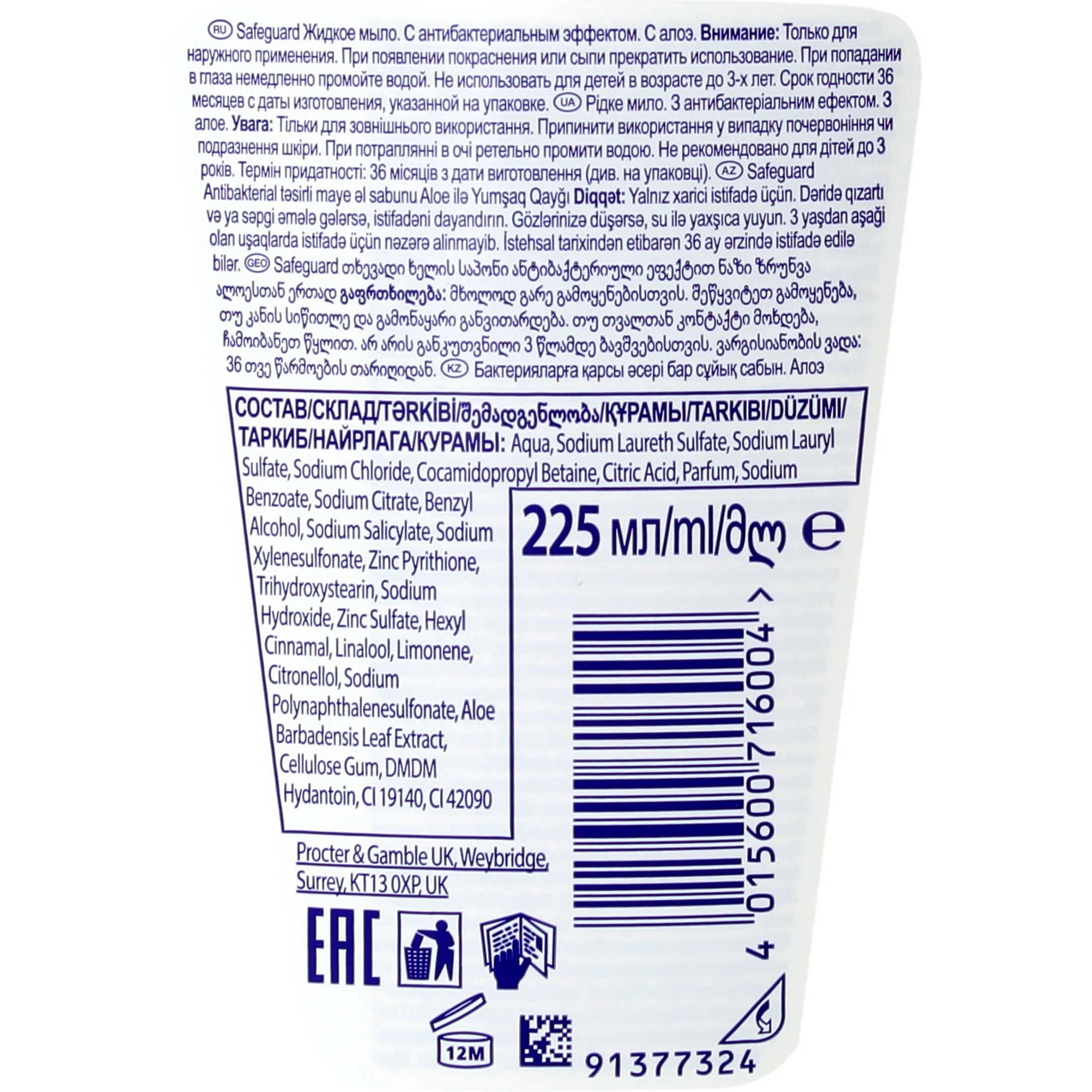 Safeguard мыло жидкое антибакт. 225мл алоэ-вера 1шт дозатор / 12шт / 81300481 / 716004,352586