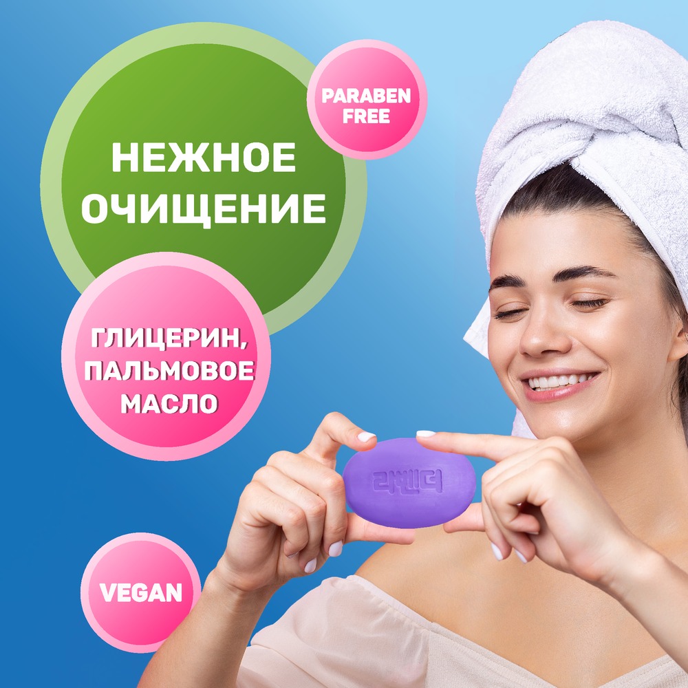 Твёрдое туалетное мыло для мытья лица, в котором используется растительное пальмовое масло для создания густой, мягкой пены, которая тщательно очищает кожу от загрязнений. Страна-изготовитель: Южная Корея. SANDOKKAEBI Косметическое туалетное мыло для лица на основе плодов масличной пальмы с ароматом лаванды, 3 шт