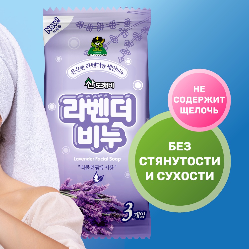 NEW! Sandokkaebi мыло твердое (3шт*90гр) очищ. д/лица лаванда м/уп 1уп. / 30шт / SN018 / 005986