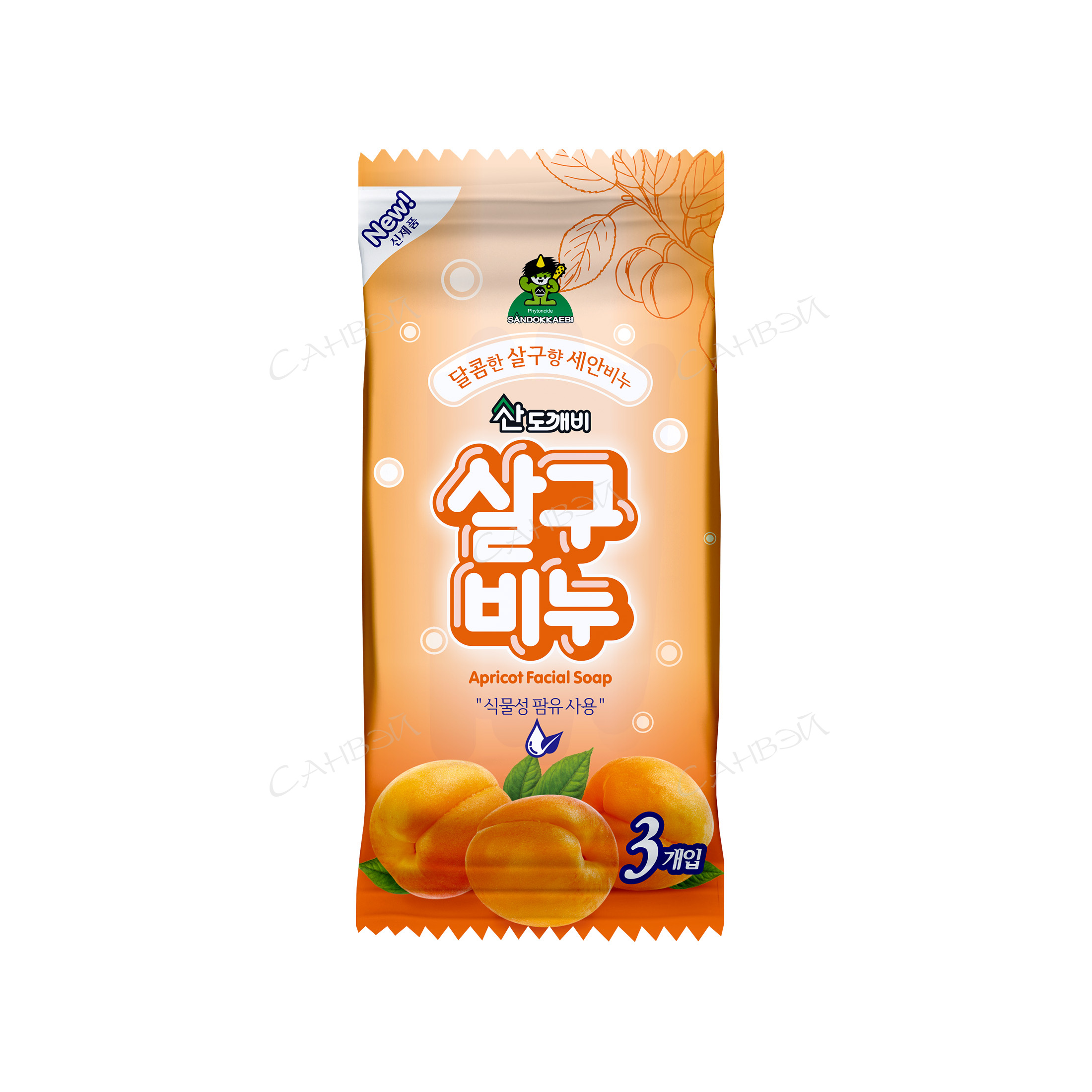 NEW! Sandokkaebi мыло твердое (3шт*90гр) очищ. д/лица абрикос м/уп 1уп. / 30шт / SN019 / 006501
