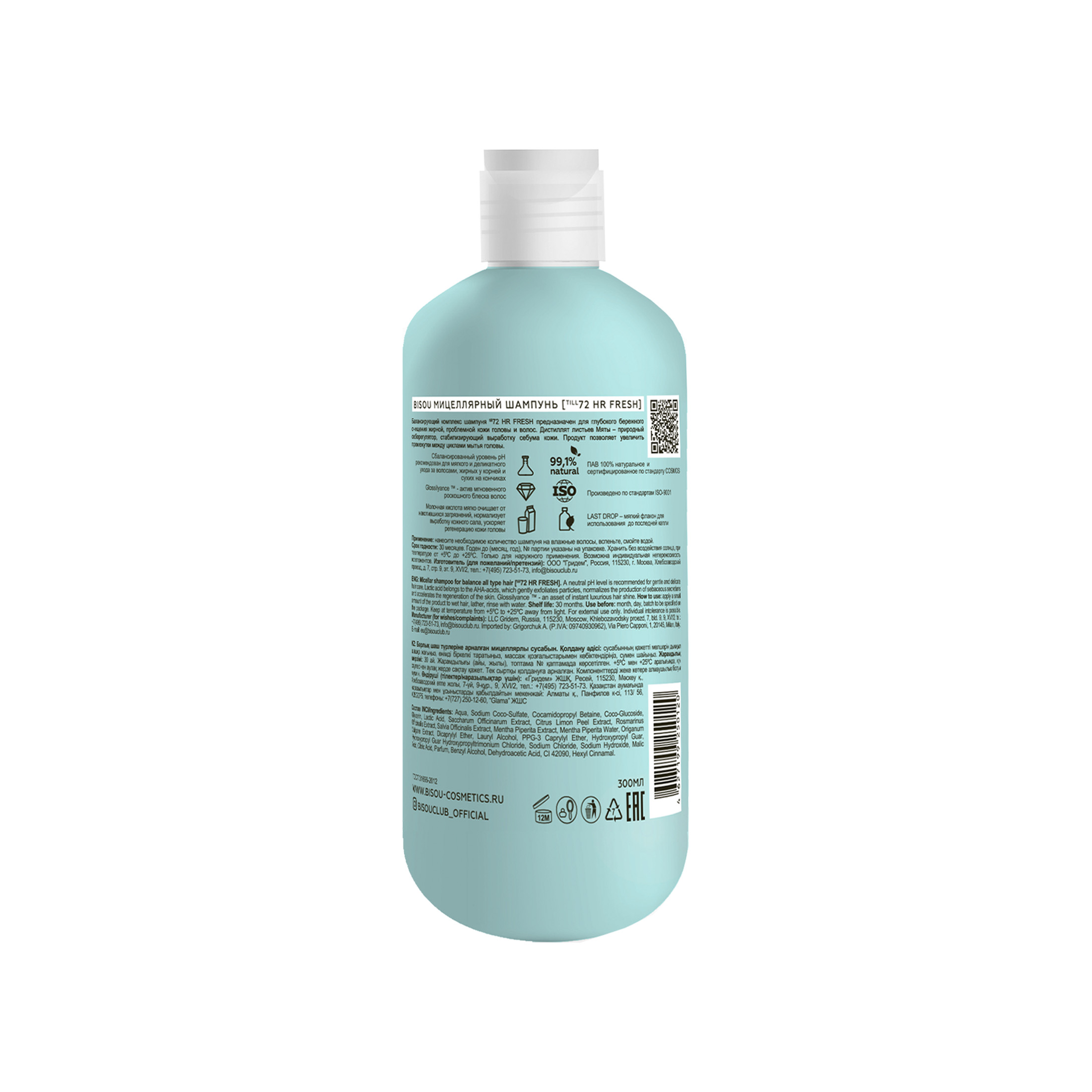 - Рабочие активы: Glossilyance, Гидролат шалфея, Гель Алоэ Вера, Мицеллярный комплекс