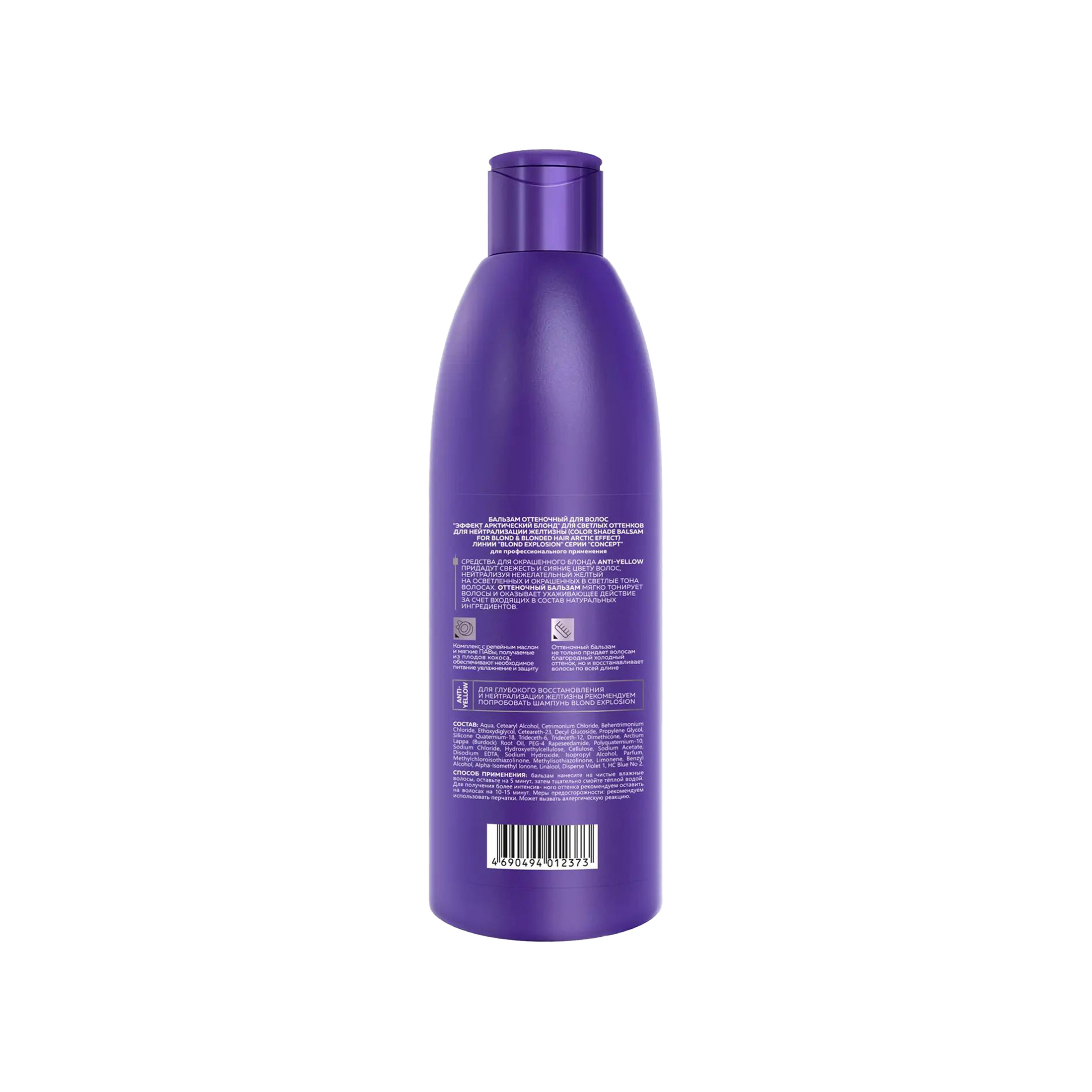 Color Shade Balsam Арктический блонд предназначен для нейтрализации желтизны, ухода, кондиционирования и тонирования обесцвеченных и осветленных волос. Это уникальный по насыщенности пигментом в массовом сегменте профессиональной косметики оттеночный бальзам с эффектом нейтрализации желтизны. Cодержит мощный комплекс компонентов кондиционирования и ухода, избавляет от необходимости покупки и использования других средств.