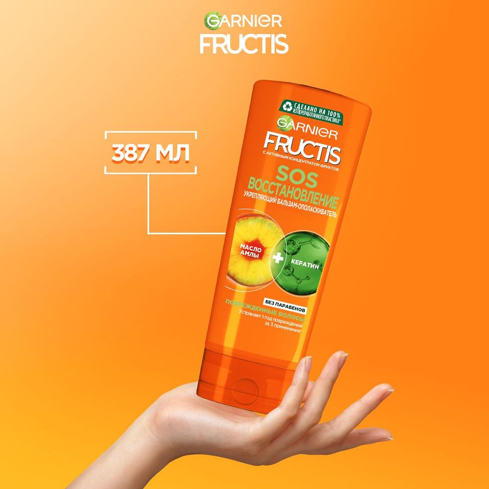 Бальзам-ополаскиватель Fructis SOS Восстановление 387 мл из Санвэй устраняет 1 год повреждений всего за три применения.