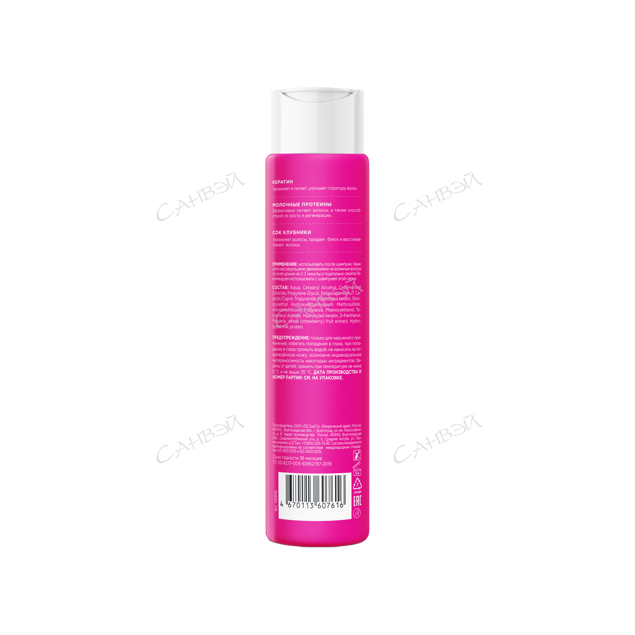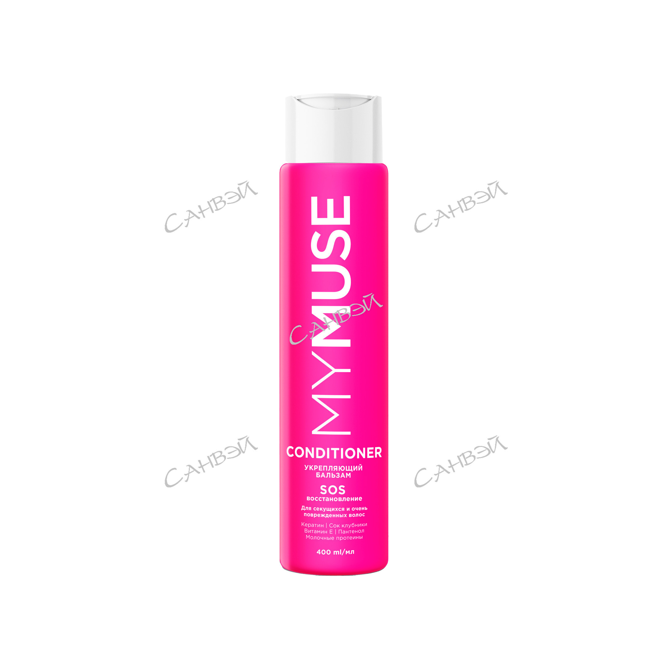 Grass My Muse Укрепляющий бальзам SOS-восстановление 400 мл из Санвэй - для секущихся и поврежденных волос с эффектом ламинирования с соком клубники имолочными протеинами, кератином и керамидом