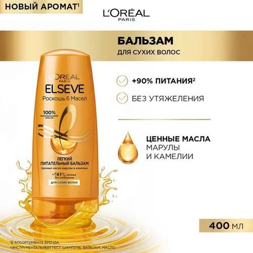 Бальзам для волос серии Эльсев Роскошь 6 Масел 400 мл – новая разработка лабораторииL’OréalParis, которая позволит преобразить тусклые, лишенные блеска волосы.