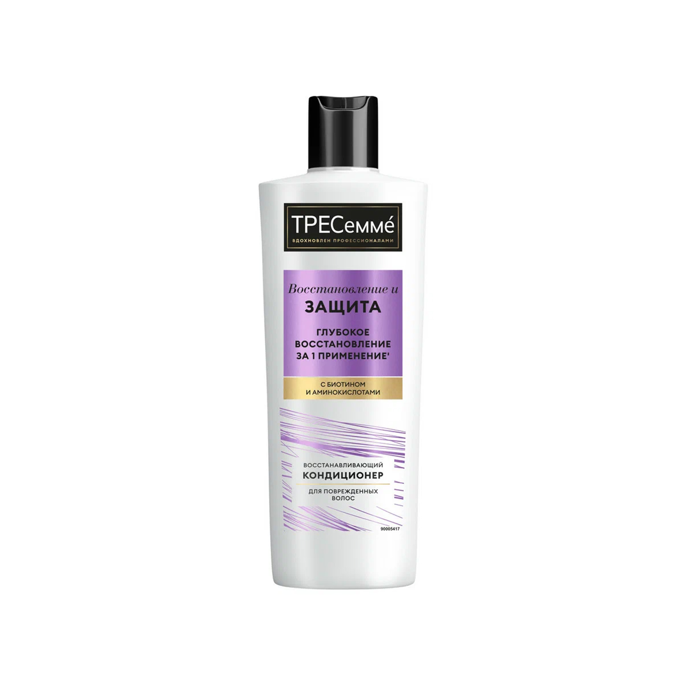 TRESemmé Repair & Protect кондиционер для волос Восстанавливающий 400 мл из Санвэй с биотином и аминокислотами восстанавливает и укрепляет волосы изнутри, уменьшает ломкость и количество секущихся кончиков, облегчает расчесывание. Кондиционер подходит для всех видов поврежденных волос, а также для ежедневного применения. Роскошный аромат кондиционера раскрывается нотами плюмерии, фрезии, бергамота, ванили и пралине.