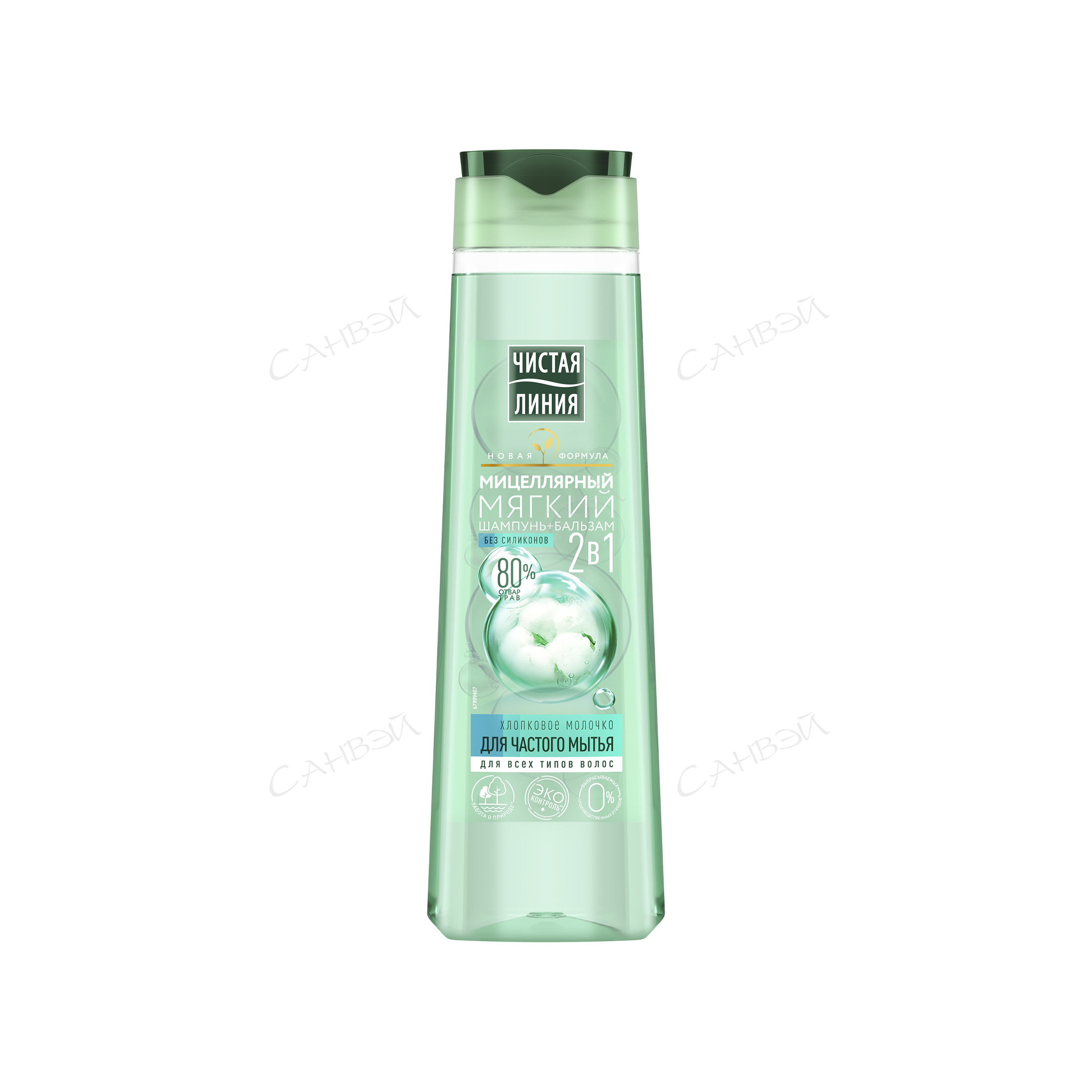 Мицеллярный шампунь 2в1 создан для мягкого очищения волос, подходит для частого мытья. Мицеллярная основа бережно очищает, не пересушивает волосы и кожу головы. Хлопковое молочко ухаживает за волосами, смягчает и облегчает расчесывание, 80% отвара трав наполняет волосы силой. Низкосульфатный - идеален для чувствительной кожи головы. Подходит для всех типов волос.