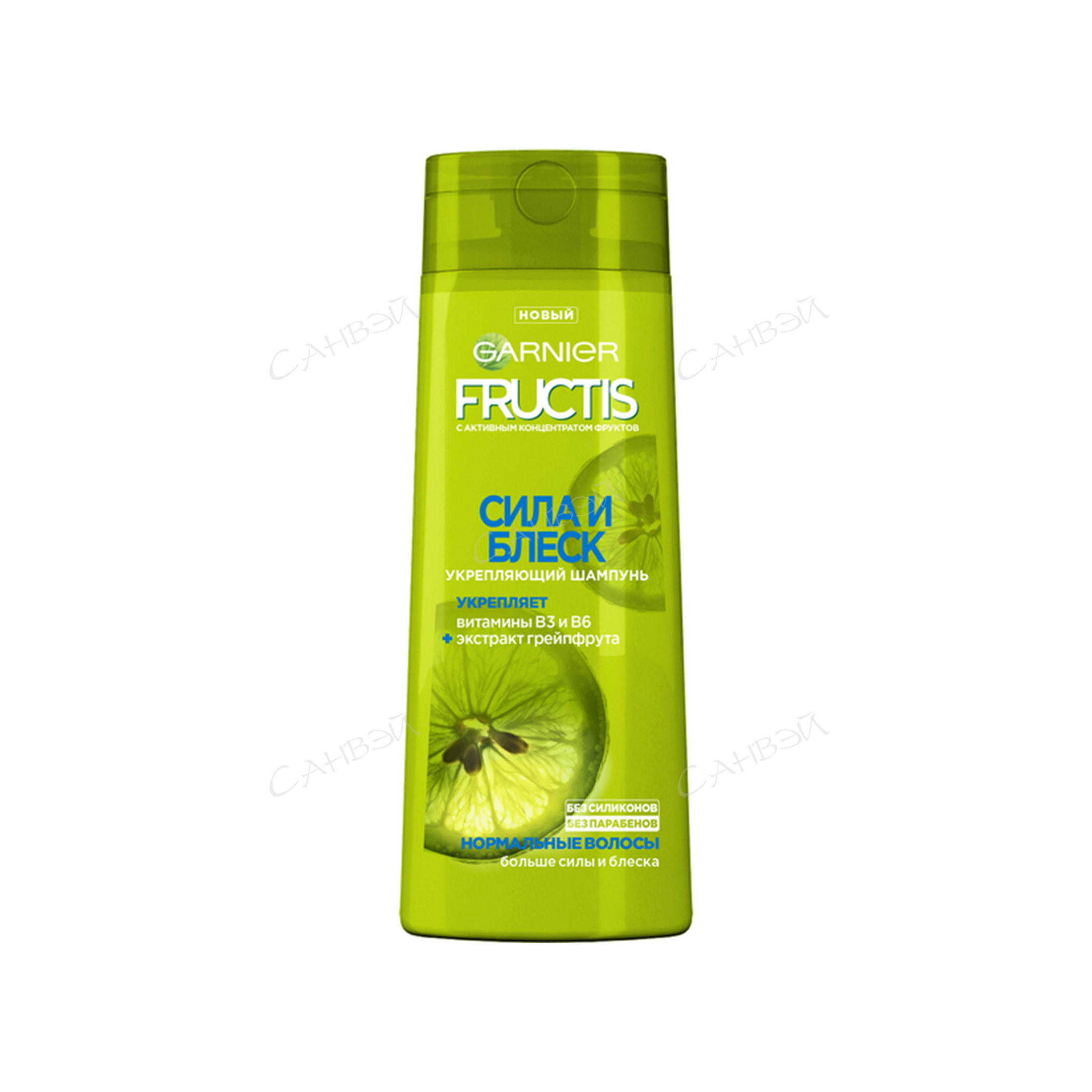 GARNIER Fructis шампунь Сила и Блеск, 400 мл из Санвэй разработан для нормальных волос. Активный концентрат фруктов в составе обеспечивает антиоксидантную защиту, делает волосы плотными и блестящими.