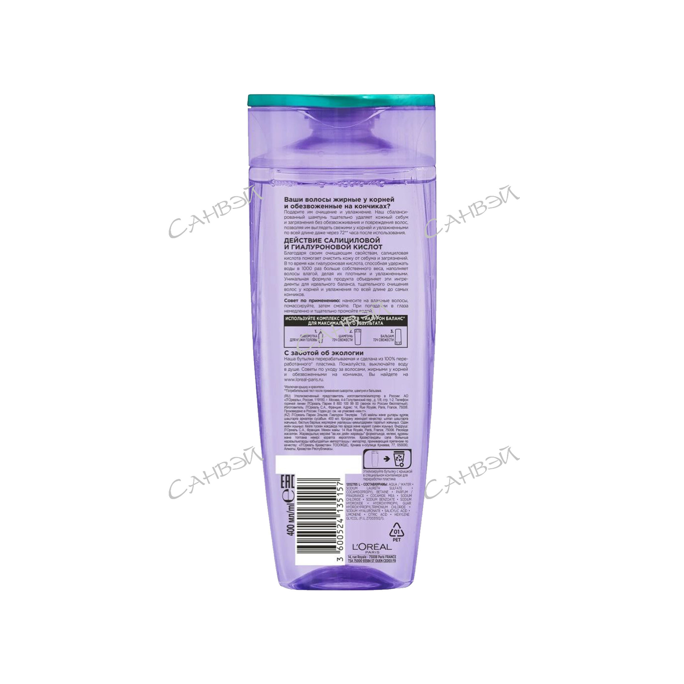 L'Oreal Paris Эльсэв Гиалурон шампунь увлажн.,свеж. д/жирн.корней,сух.конч. 400мл флакон 1шт / 12шт / AA759801 / 135157
