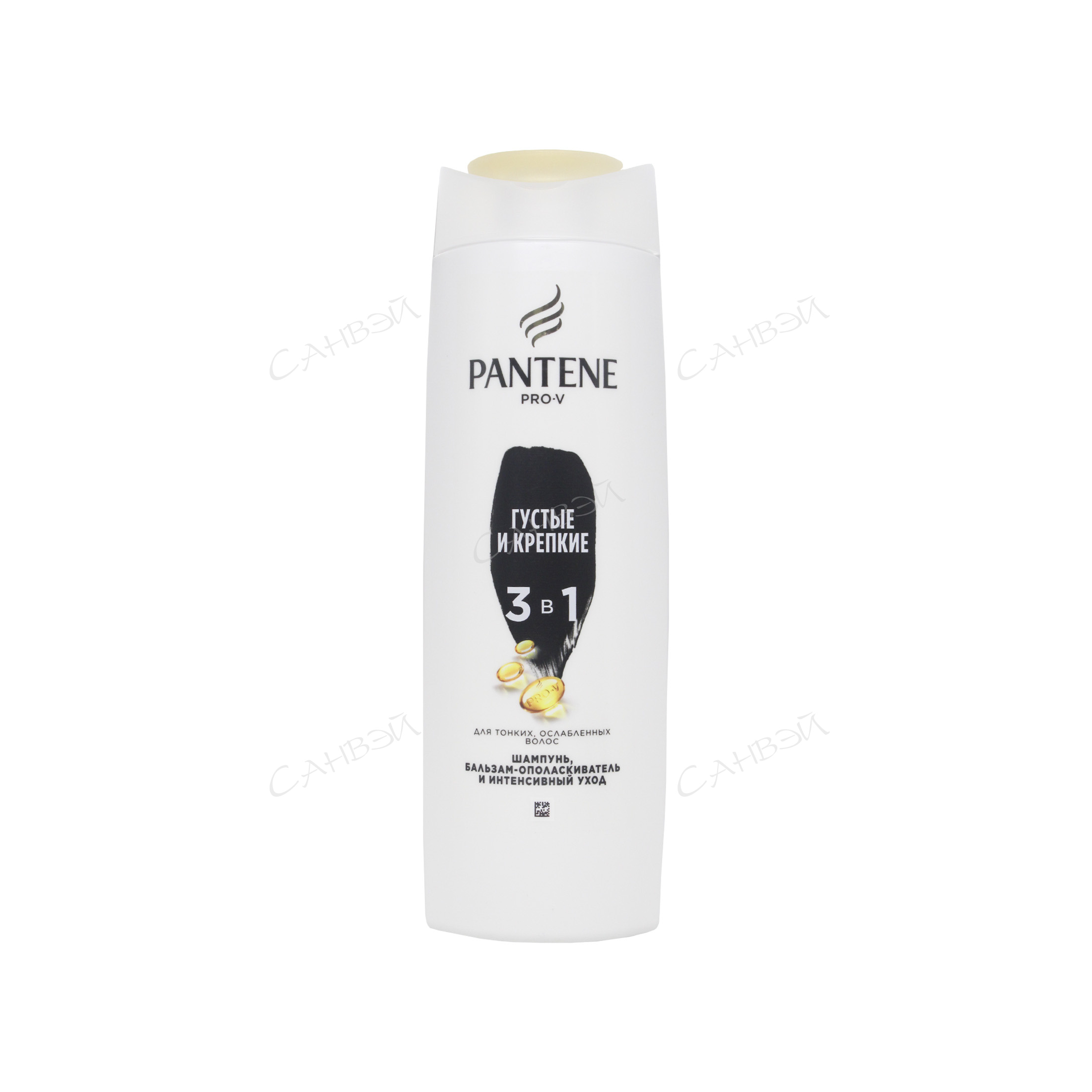 Шампунь Pantene Pro-V Густые и крепкие 3в1 + кондиционер + интенсивный уход очищает, облегчает расчесывание и восстанавливает волосы за одно применение. Заряжает волосы активными питательными веществами Pro-V. Мгновенно делает волосы более густыми и крепкими.