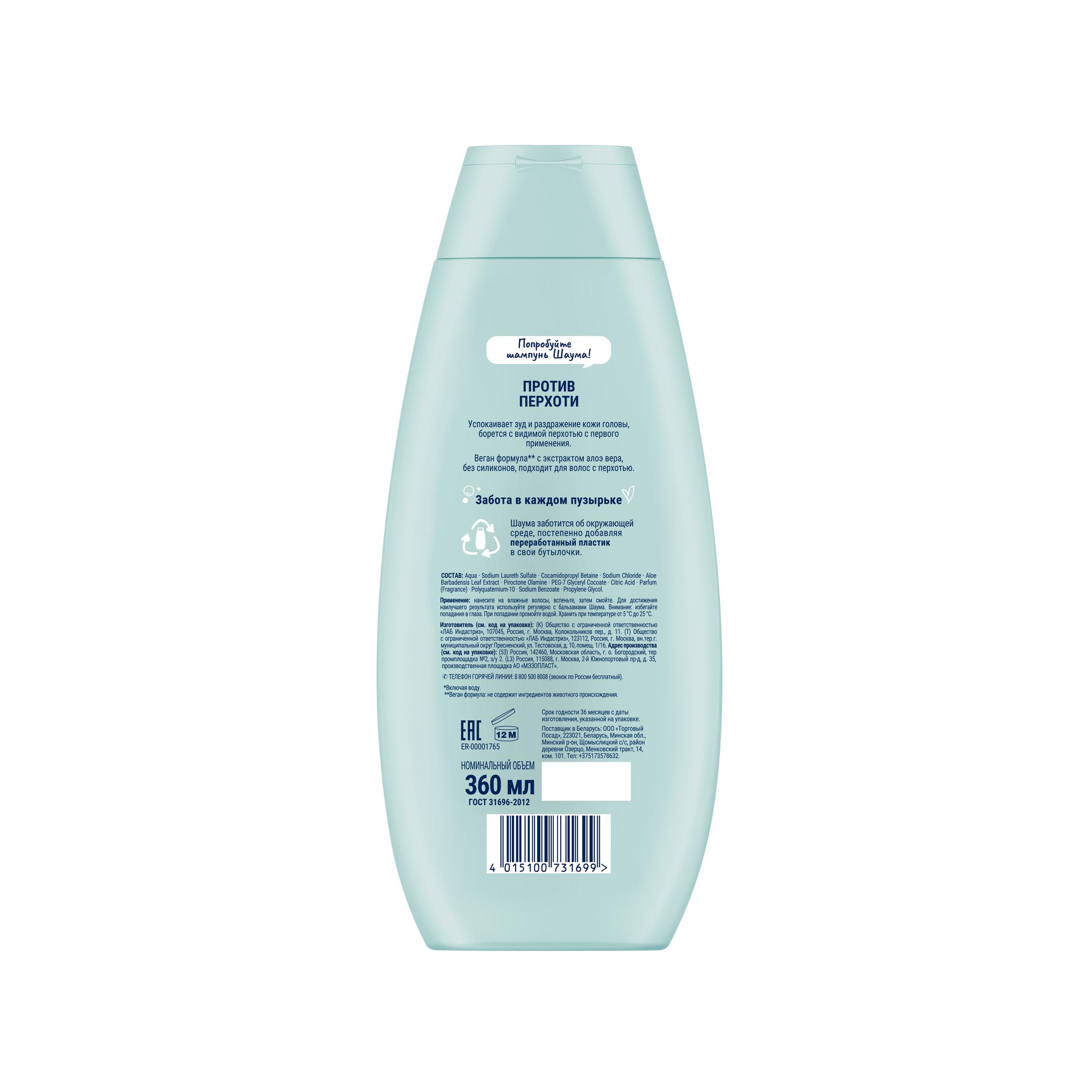 ШАУМА 360 мл Шампунь Против Перхоти для волос с перхотью 350 мл из магазина Санвэй:
