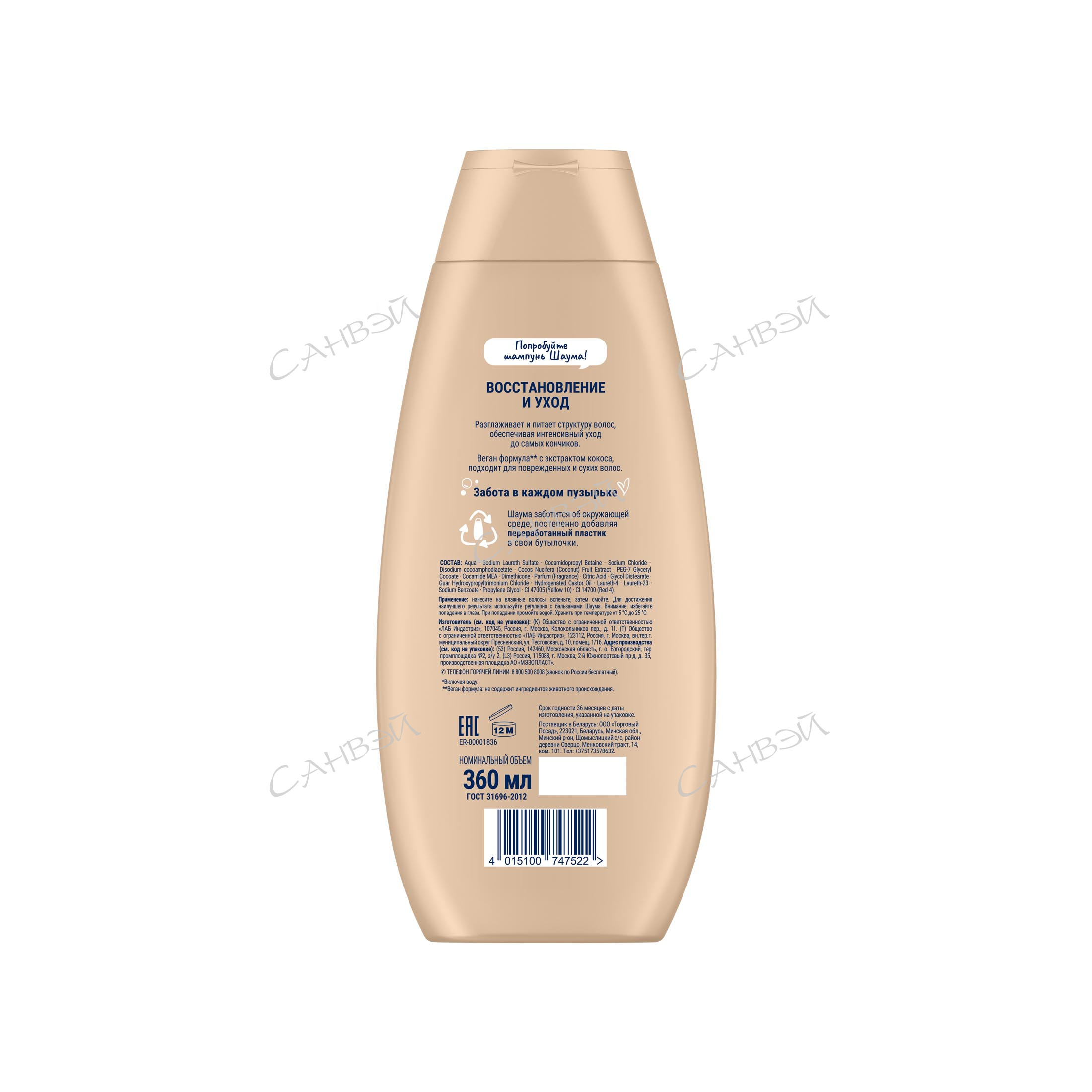ШАУМА 360 мл Шампунь Восстановление и Уход для поврежденных и сухих волос из интернет-магазина Санвэй: