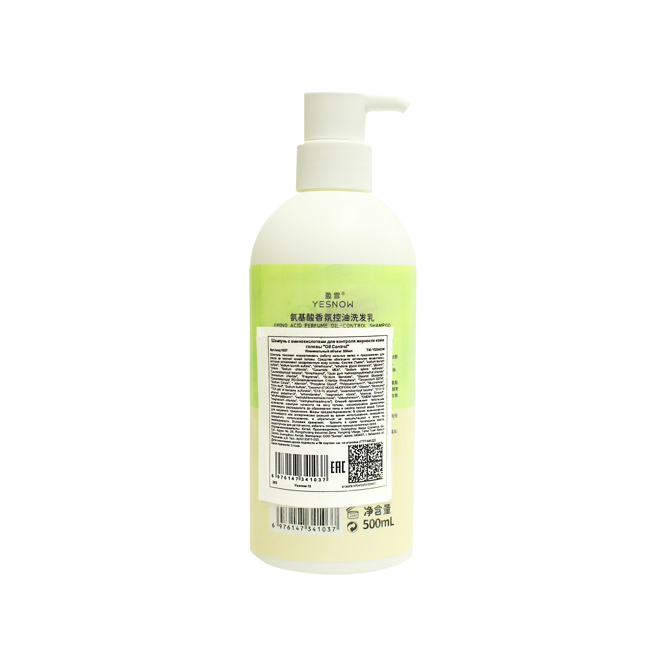 Yesnow Oil Control шампунь контроль жирности д/в тип.вол. аминокис. 500мл дозатор 1шт / 40шт / 1037 / 341037